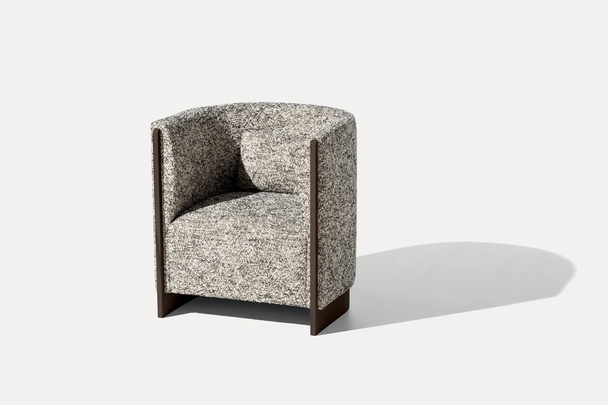 Featuring Art Déco styling and deep ‘bucket’ seats, Adeline is elegantly simple with compact dimensions and a supportive structure which makes it the ideal choice for conversation corners as well as waiting rooms within international offices and company headquarters. Its wooden form takes on a decorative element thanks to a wide colour palette of matt and gloss lacquer finishes. The upholstery can be in leather or premium quality fabric in a variety of colours with extra comfort provided by the addition of decorative cushions.