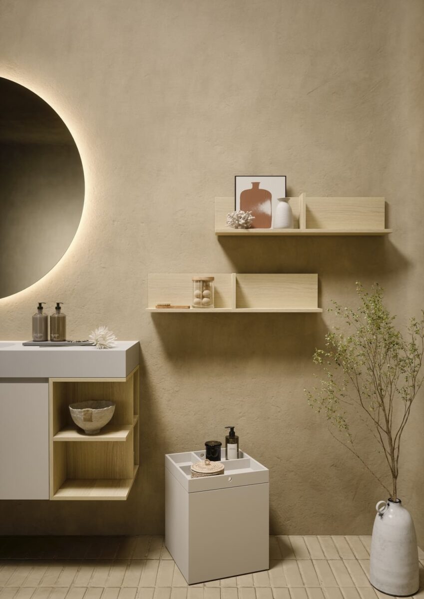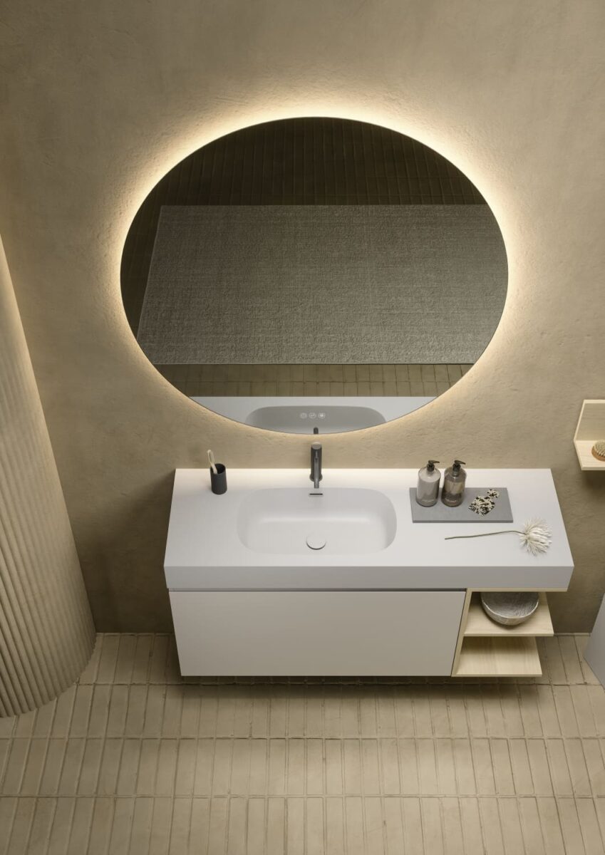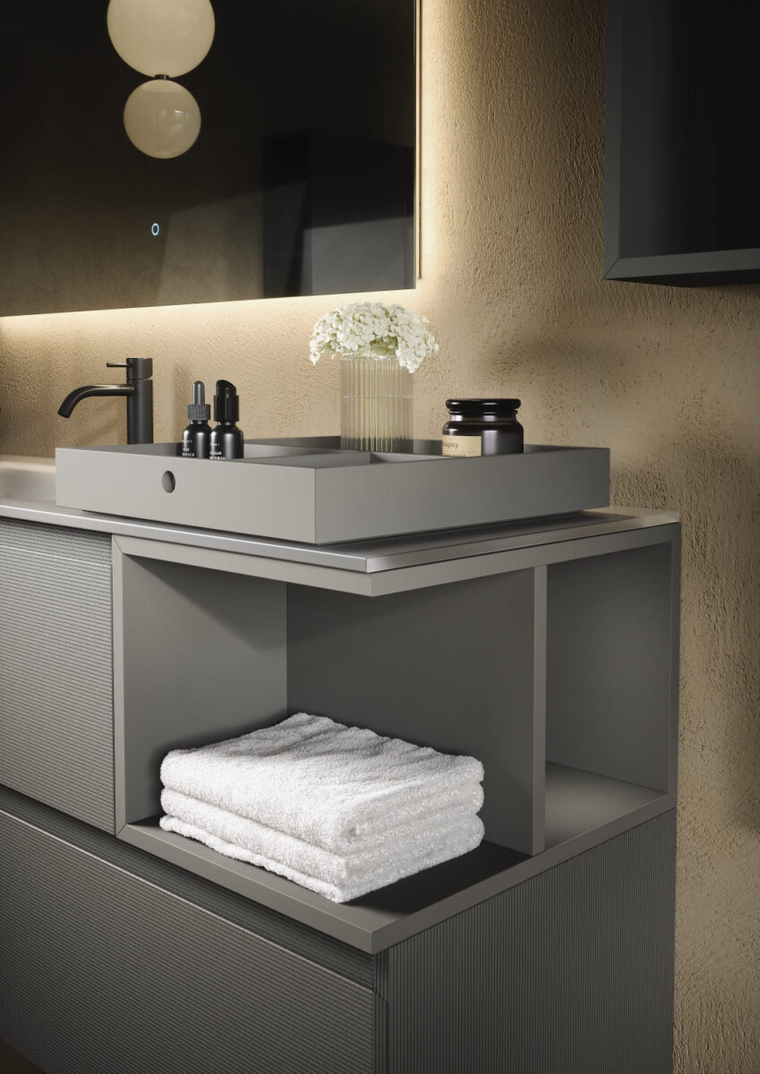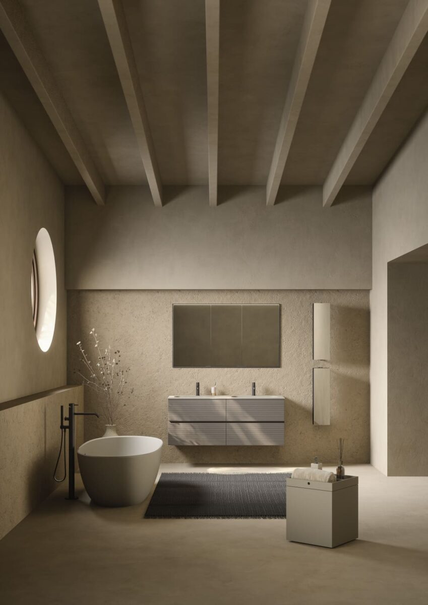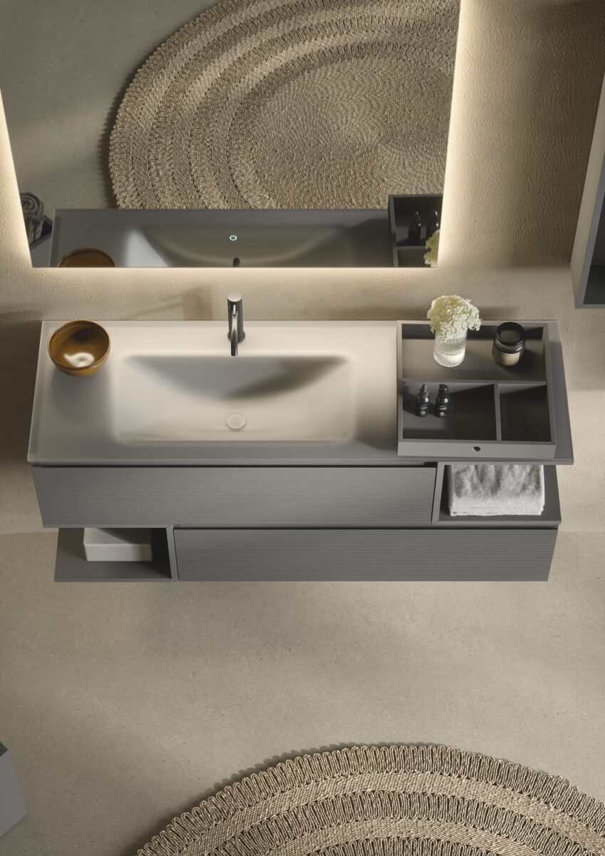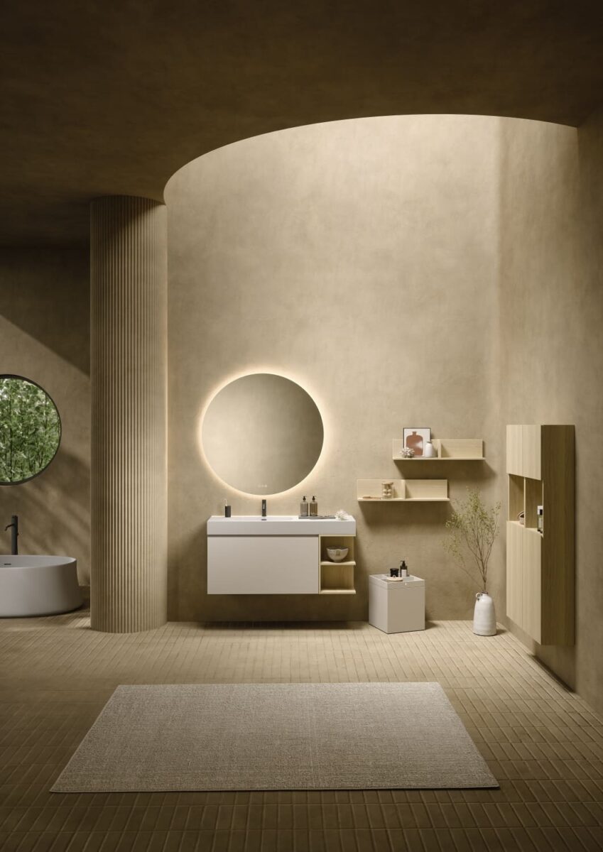 AXIS превращает ванную комнату в цельную и продуманную среду. Мягкие линии и плавные переходы формируют ощущение текучести, матовые поверхности и природные тона придают интерьеру спокойствие, а свет подчеркивает геометрию и глубину. Здесь форма и функция соединяются, создавая атмосферу ясности и уюта.