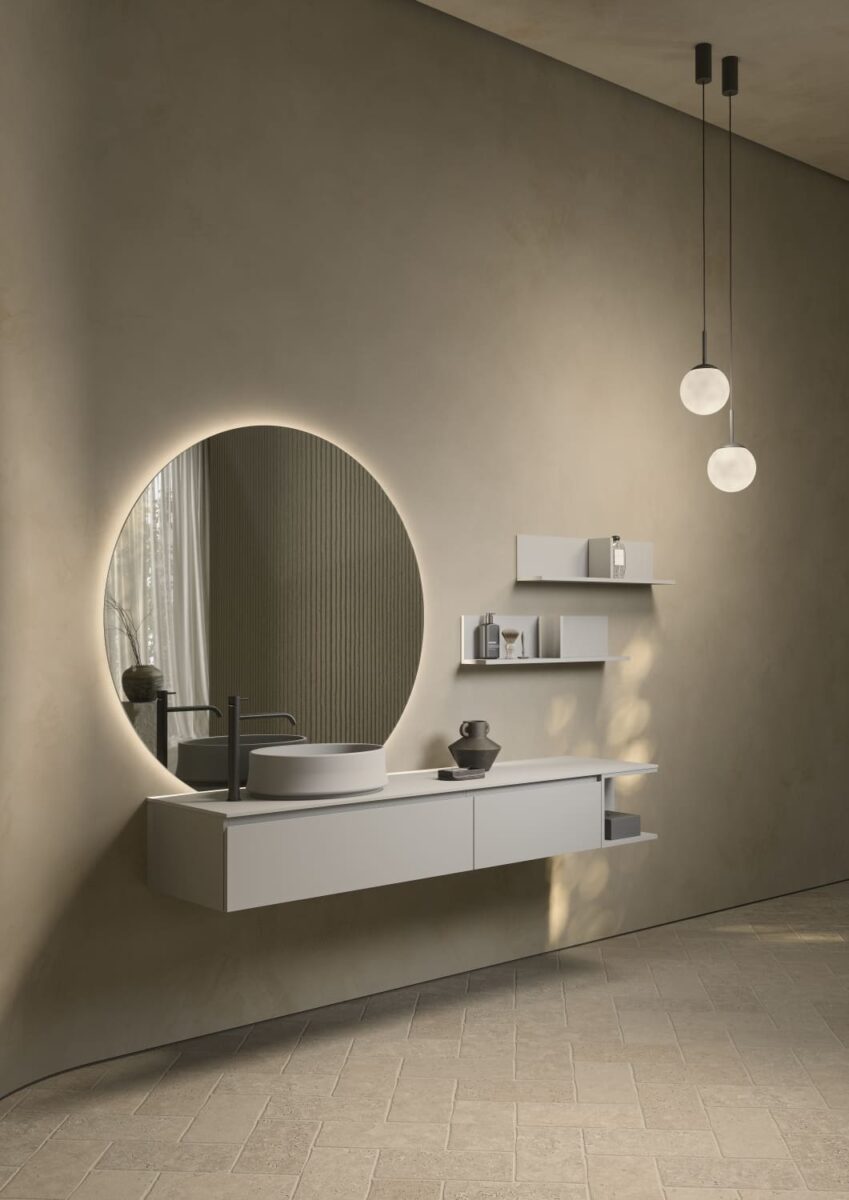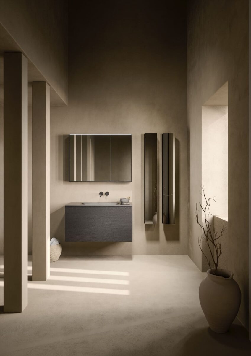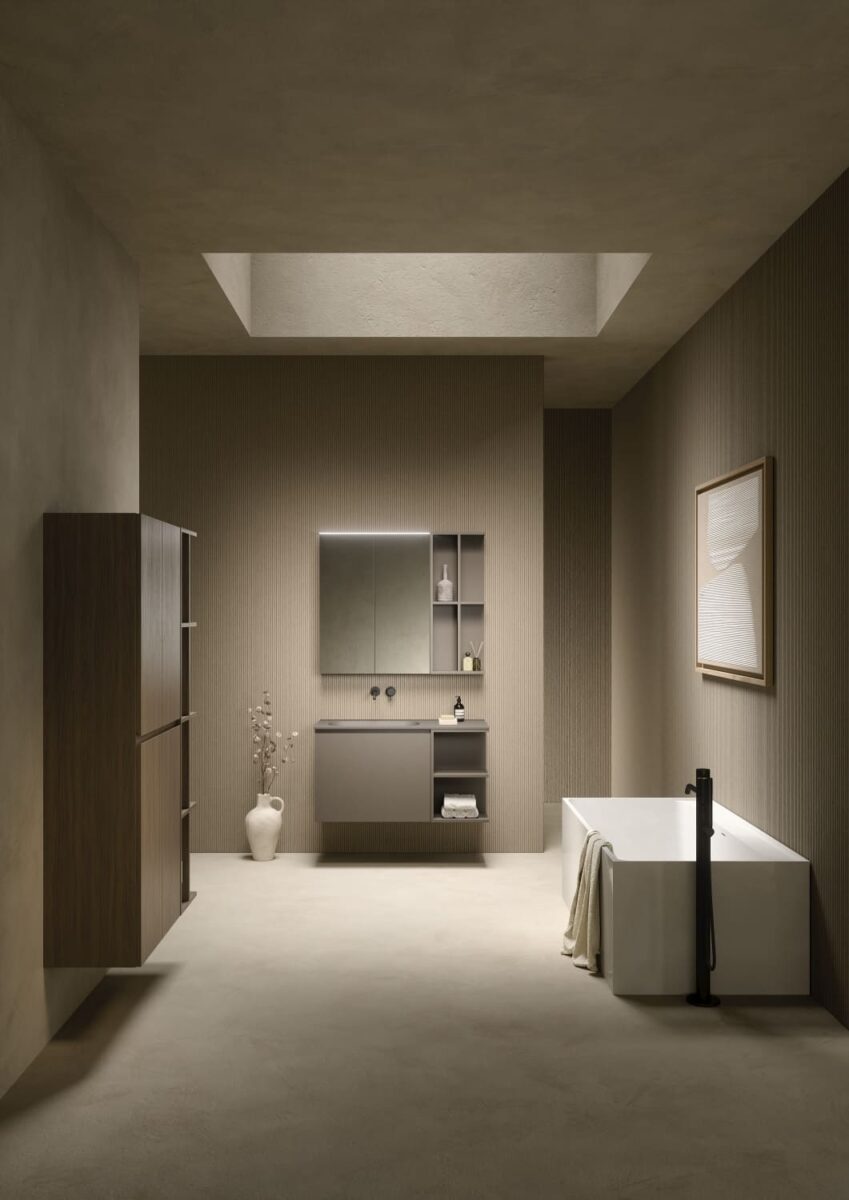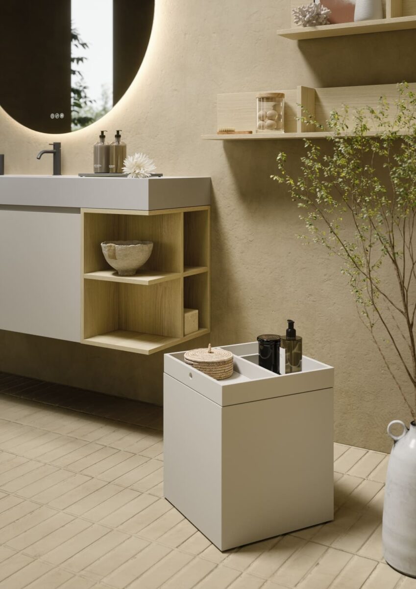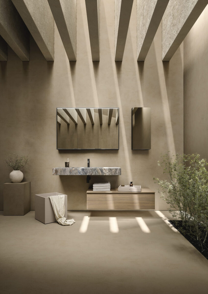 AXIS превращает ванную комнату в цельную и продуманную среду. Мягкие линии и плавные переходы формируют ощущение текучести, матовые поверхности и природные тона придают интерьеру спокойствие, а свет подчеркивает геометрию и глубину. Здесь форма и функция соединяются, создавая атмосферу ясности и уюта.