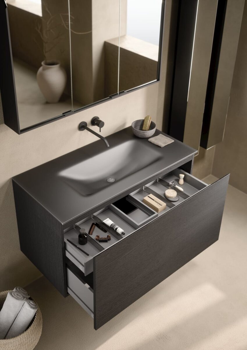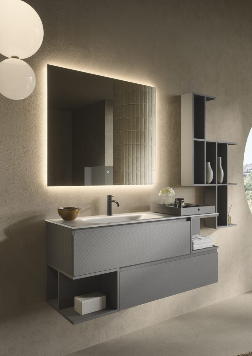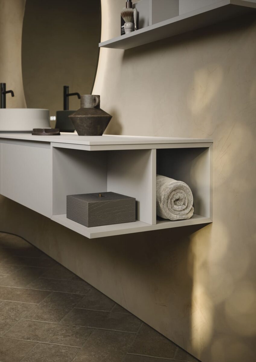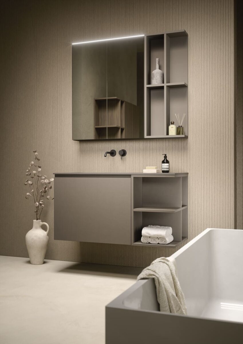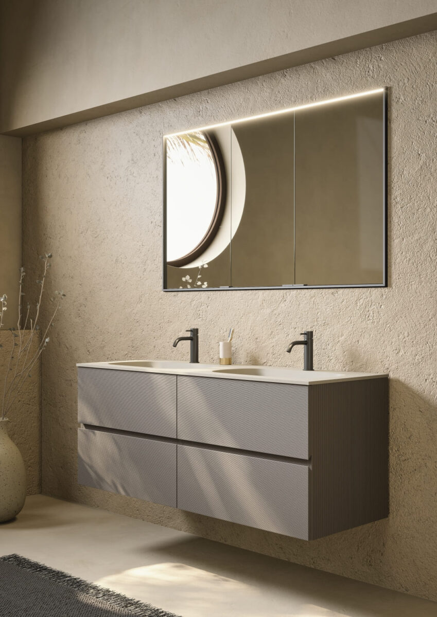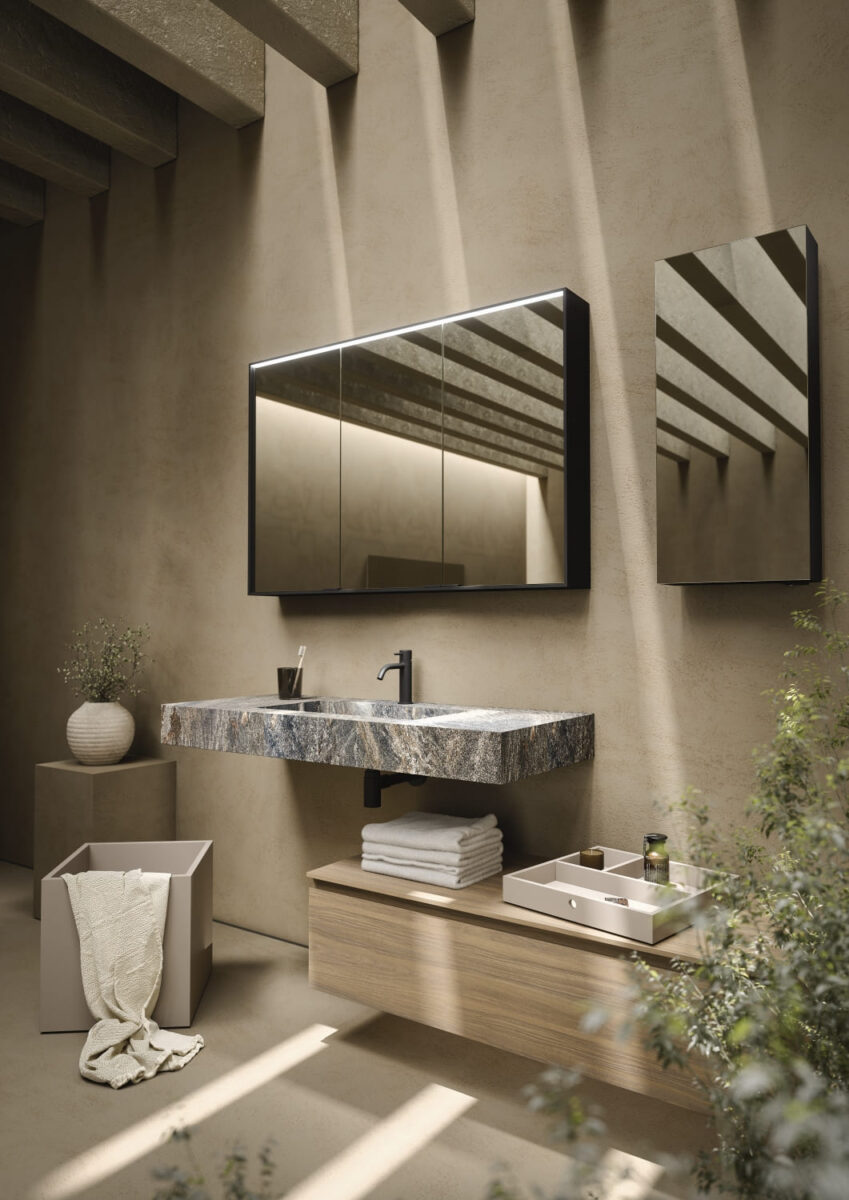 AXIS превращает ванную комнату в цельную и продуманную среду. Мягкие линии и плавные переходы формируют ощущение текучести, матовые поверхности и природные тона придают интерьеру спокойствие, а свет подчеркивает геометрию и глубину. Здесь форма и функция соединяются, создавая атмосферу ясности и уюта.