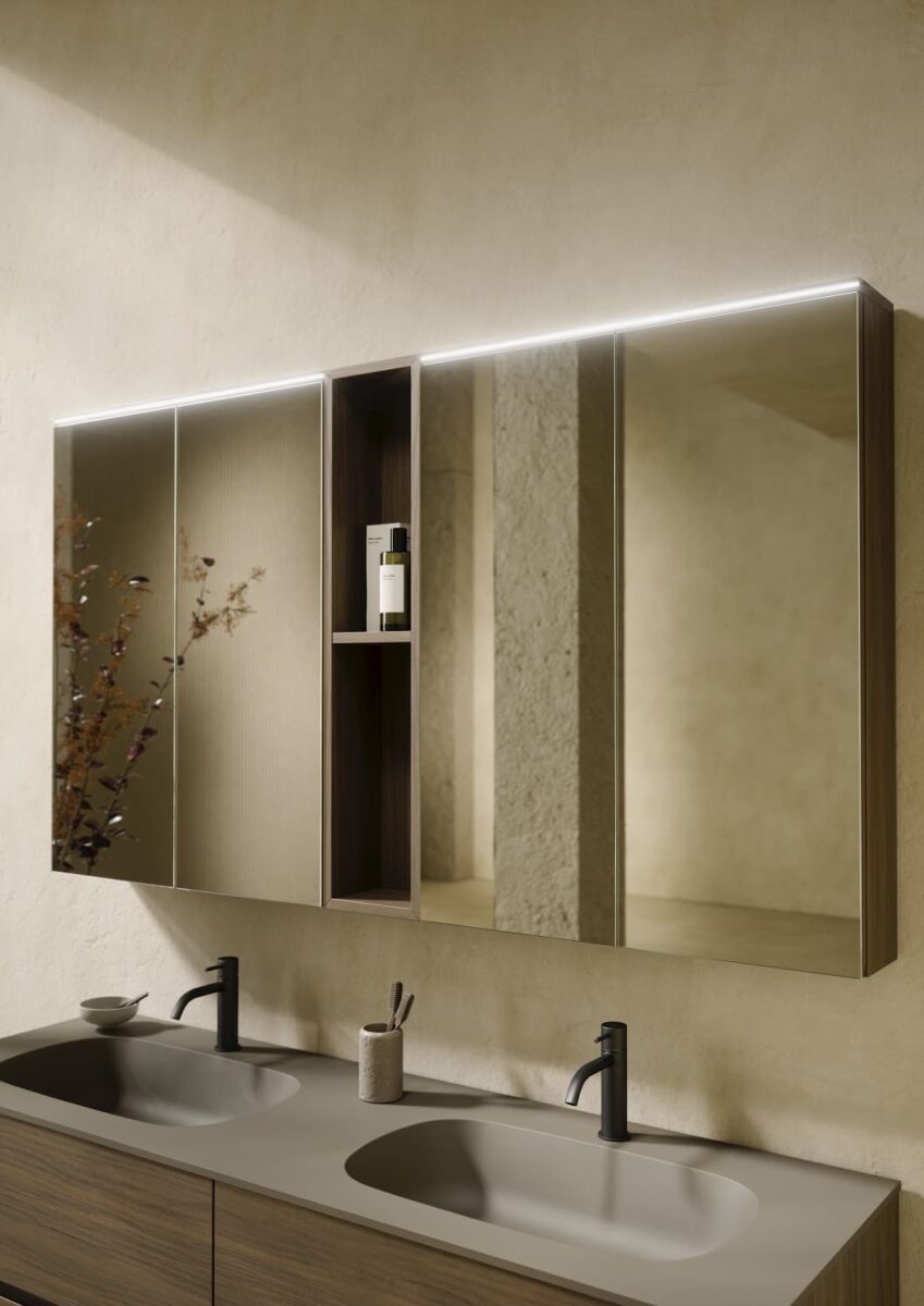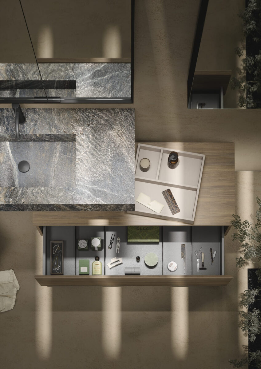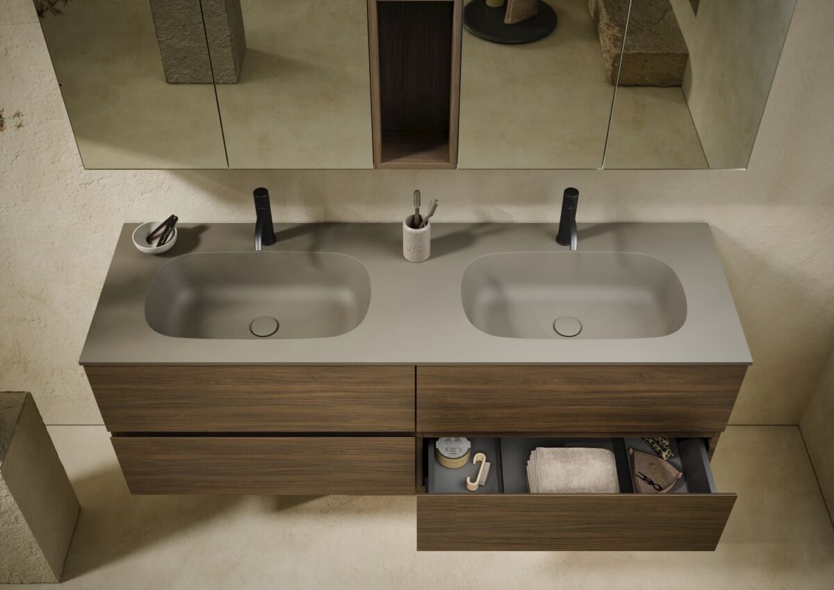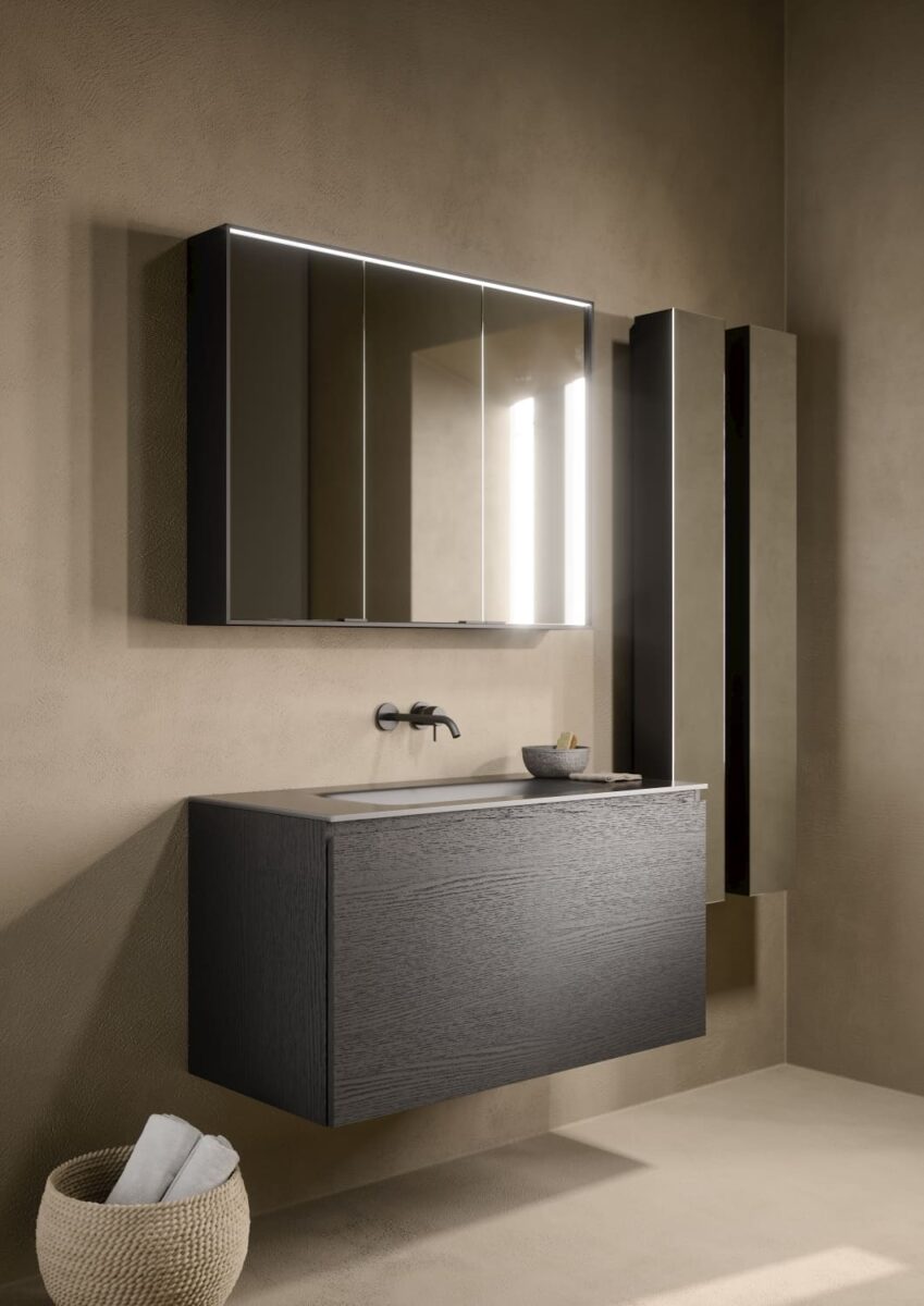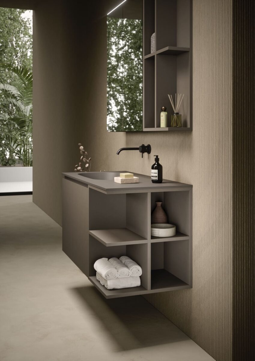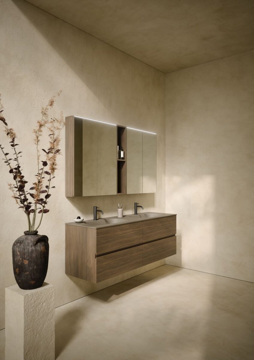 AXIS превращает ванную комнату в цельную и продуманную среду. Мягкие линии и плавные переходы формируют ощущение текучести, матовые поверхности и природные тона придают интерьеру спокойствие, а свет подчеркивает геометрию и глубину. Здесь форма и функция соединяются, создавая атмосферу ясности и уюта.