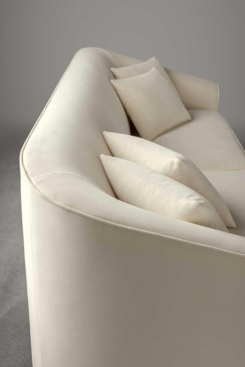 Canapé disponible en trois dimensions, avec piètement en chêne ou hêtre massif, disponible dans toutes les finitions de bois et de laqués. Structure revêtue en polyuréthane expansé avec une couche externe en plume d’oie. Les mousses de polyuréthane adoptées pour les dossiers et le revêtement de la structure sont de première qualité et de différente densité et sont directement fixées aux sangles élastiques. Les coussins décoratifs en plume d’oie. L’intérieur de l’assise est composé d’une base en polyuréthane expansé, d’une partie centrale en plume d’oie pour les tissus ou en memory pour les cuirs et d’une partie externe en Dacron. Le revêtement peut être en tissu ou en cuir.