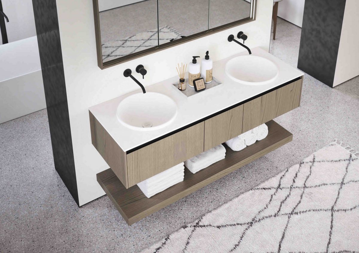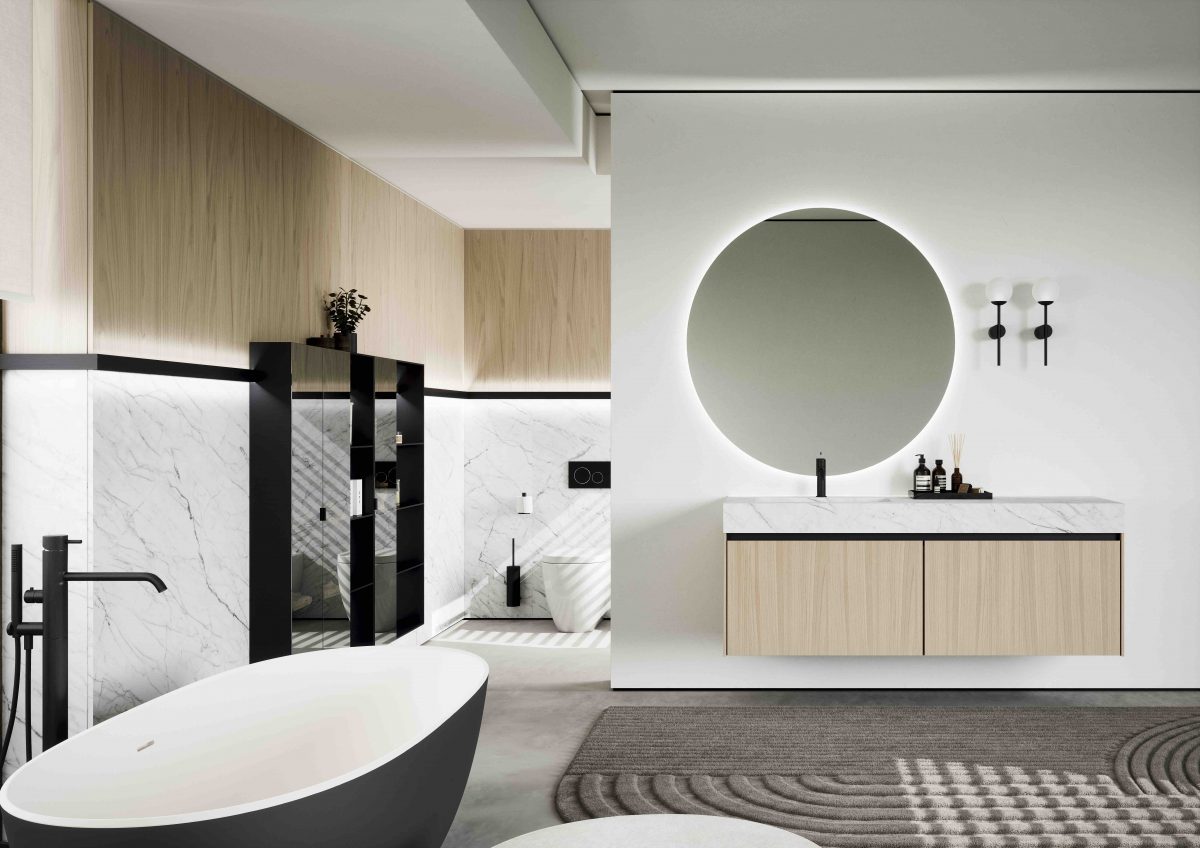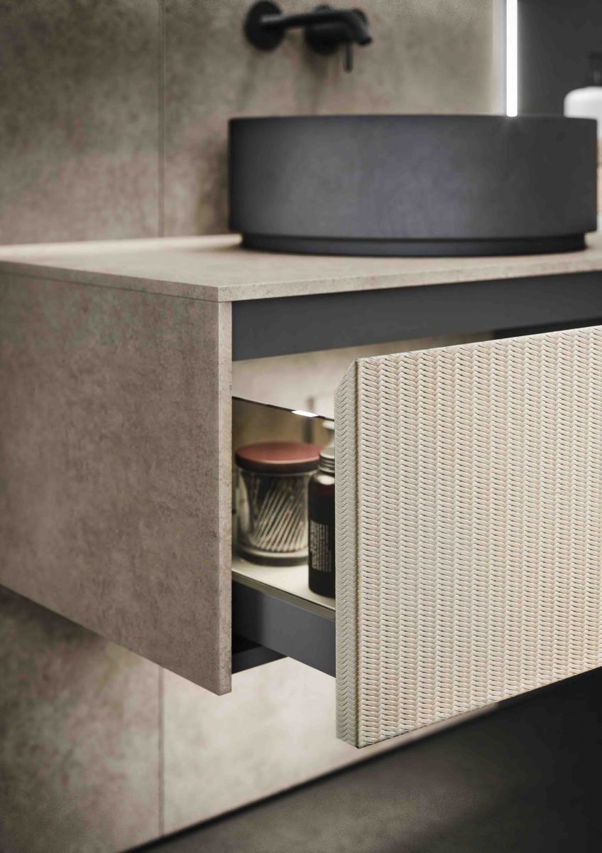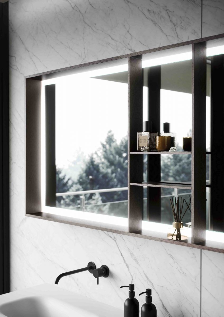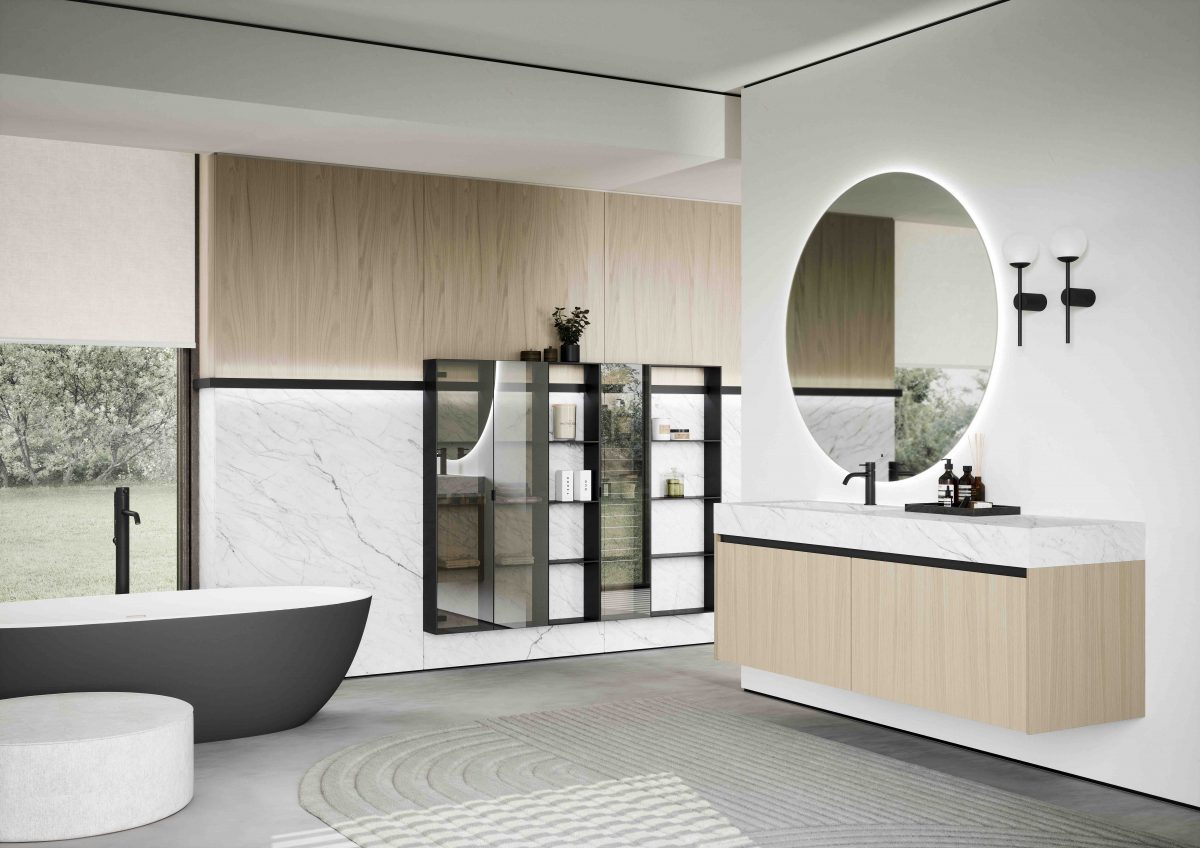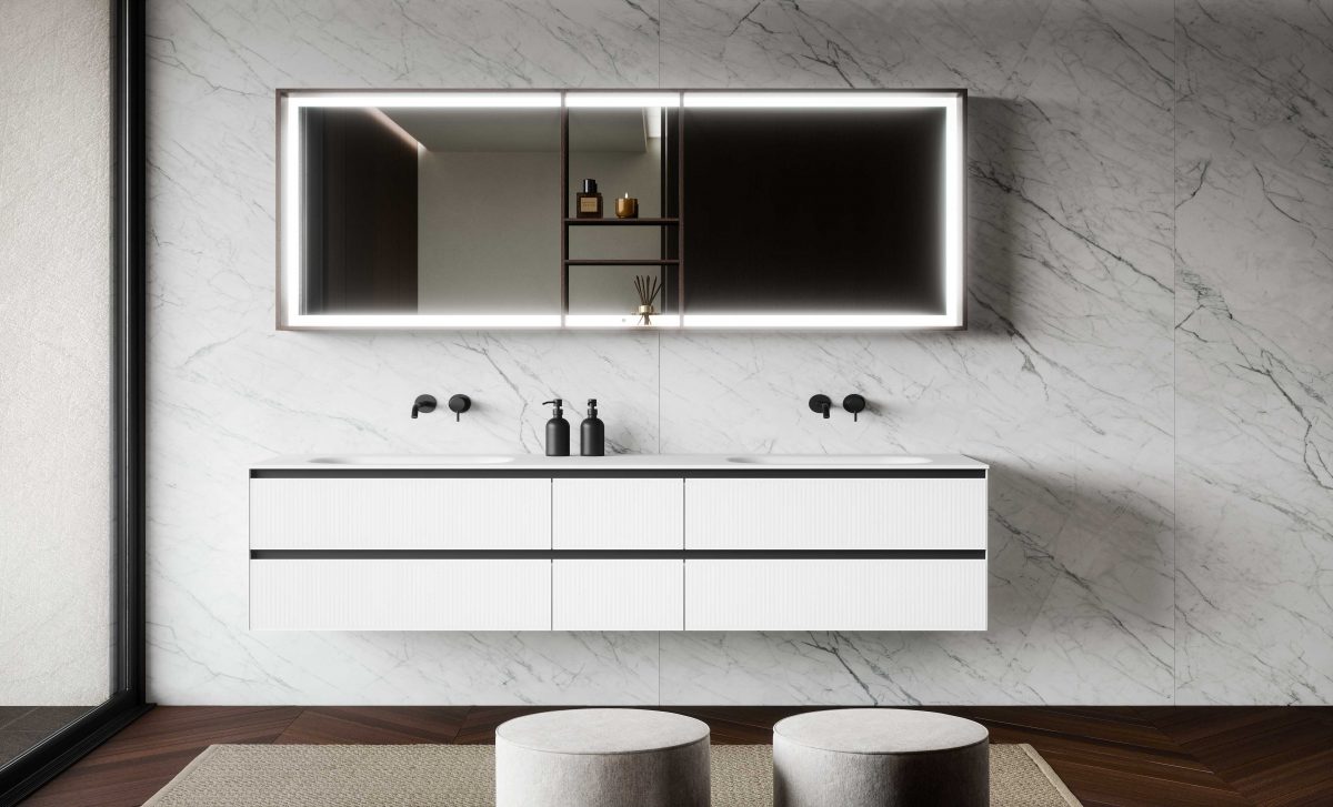 I lavabi integrati sono di varie forme e materiali: Purefeel, Geacril, Corian, marmo, Gres porcellanato e vetro. La collezione è realizzata in dimensioni che garantiscono un uso ottimale dello spazio all’interno del bagno. Oltre ai mobili lavabo, la gamma completa comprende pensili, colonne, boiserie e specchi pensati per creare un ambiente coerente e sofisticato.