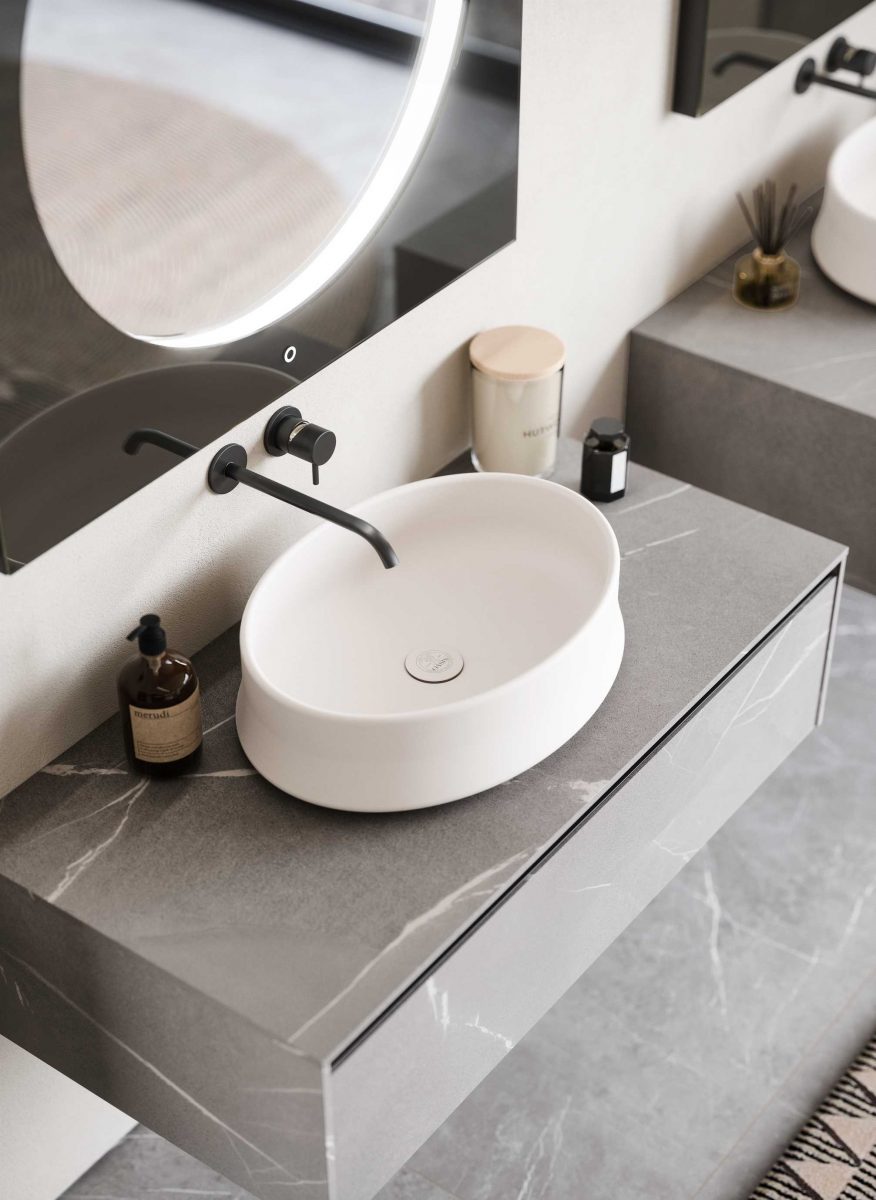 washbasins come in various shapes and materials. Also available in coloured Purefeel, Lightfeel and glass
