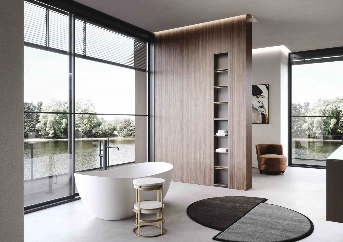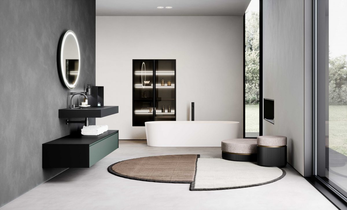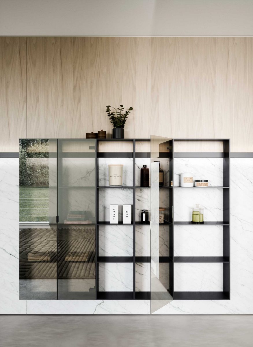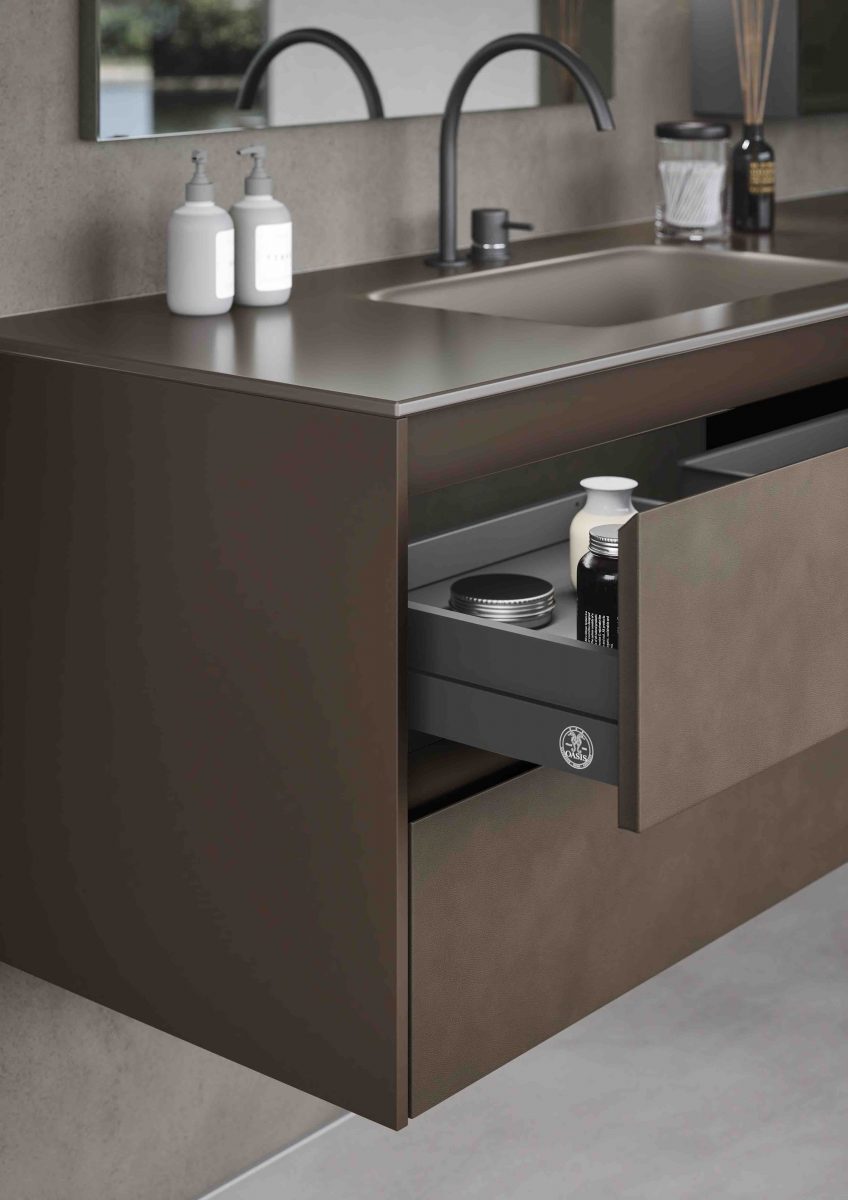 Eden is one of the most recent addition to the Oasis Bathroom Collection. The collection comes in a wide variety of finishes. From glossy, matt or metallic lacquers to porcelain stone and a multitude of real wood veneers. It is also available in coloured glass or ribbed coloured glass with integrated washbasins of various shapes and materials: Purefeel, Geacril, Corian, marble, porcelain stone and glass. The Collection is modular in design, thereby ensuring an optimal use of space within the bathroom. In addition to vanities, there are tall units, wall units, open shelves and mirrors, all designed to form a coherent and sophisticated ambience.