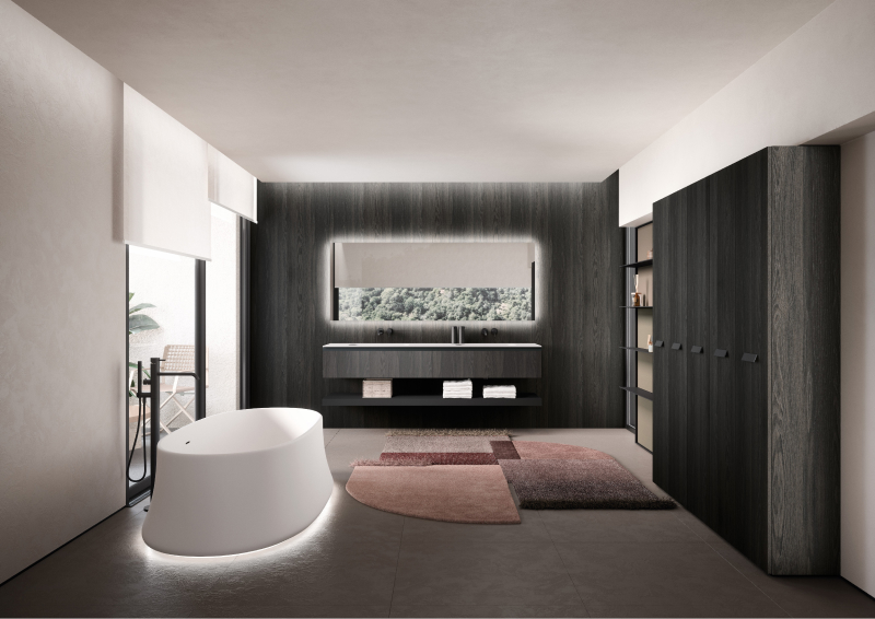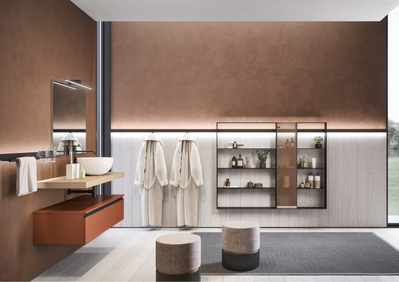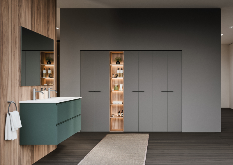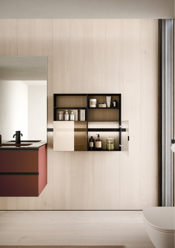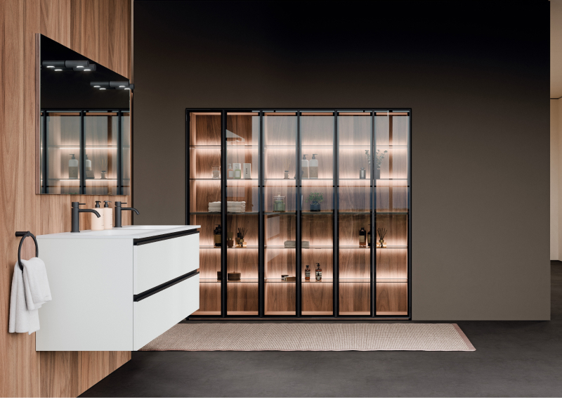 Oasis introduces the new Forever collection, an excellent synthesis of form and function, where modern and square geometries are lightened and embellished by the thin aluminum handle that, always tinted in the same finish of the furniture, disappears into the inside, creating a clean an integrated design. The piece of furniture well adapts to any space and situation thanks to its high modularity and the wide selection of finishes and colors, in both glossy and matt, or metallic versions.