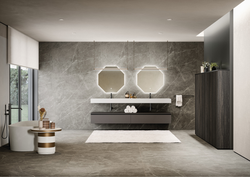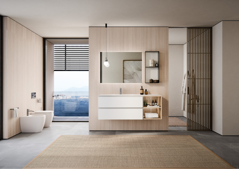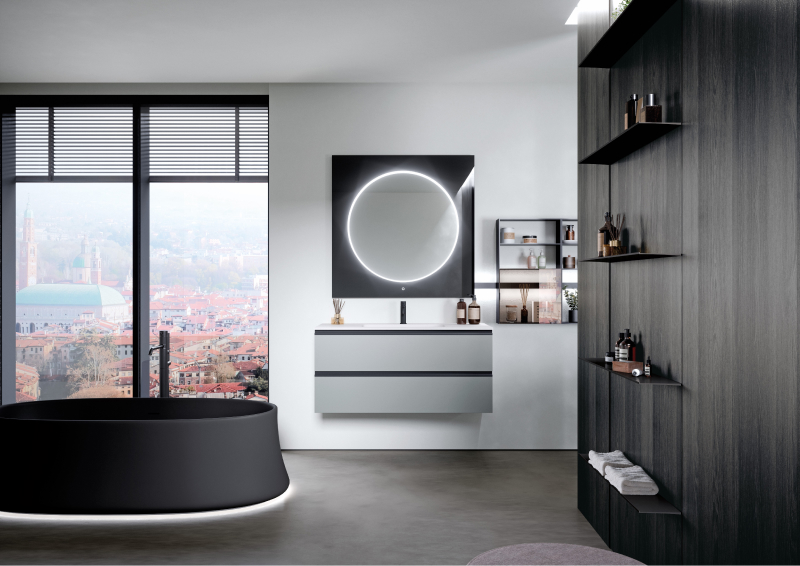 Oasis présente la nouvelle collection Forever, un’excellente synthèse de formes et de fonctions, où les géométries modernes et carrées sont allégées et ornées par la poignée mince en aluminium qui, colorée dans la même finition que le meuble, disparaît à l’intérieur pour créer un design intégré. Le meuble s’adapte bien à tous les espaces et à toutes les situations, grâce à sa grande modularité et à la vaste gamme de finitions et de couleurs, dans les versions brillante, mate et métallisée. Enfin, vous pouvez personnaliser votre composition en choisissant le lavabo qui répond le mieux à vos besoins. Les lavabos sont disponibles en céramique, en résine blanche ou verre, verre intégré et fond peint, aussi bien dans la version brillante que satinée.