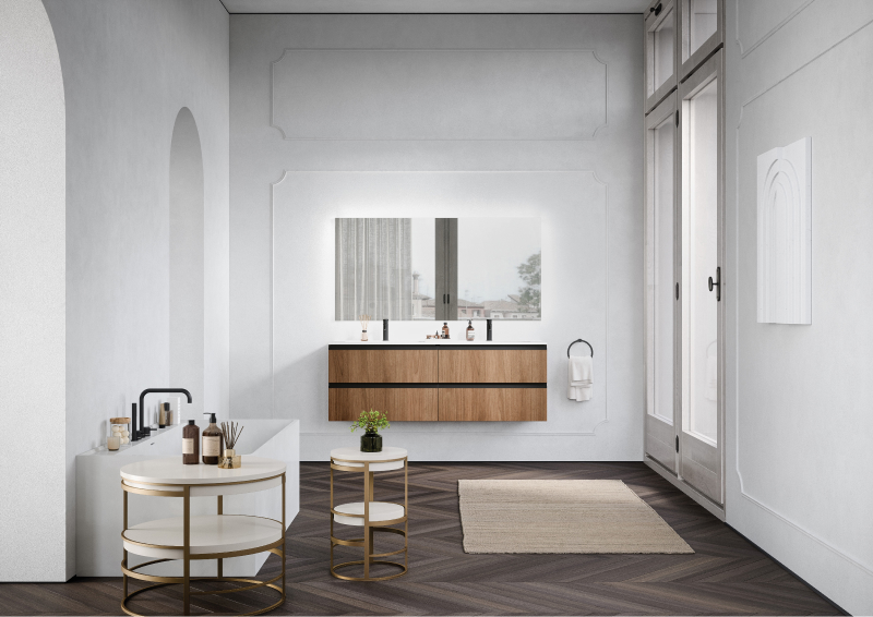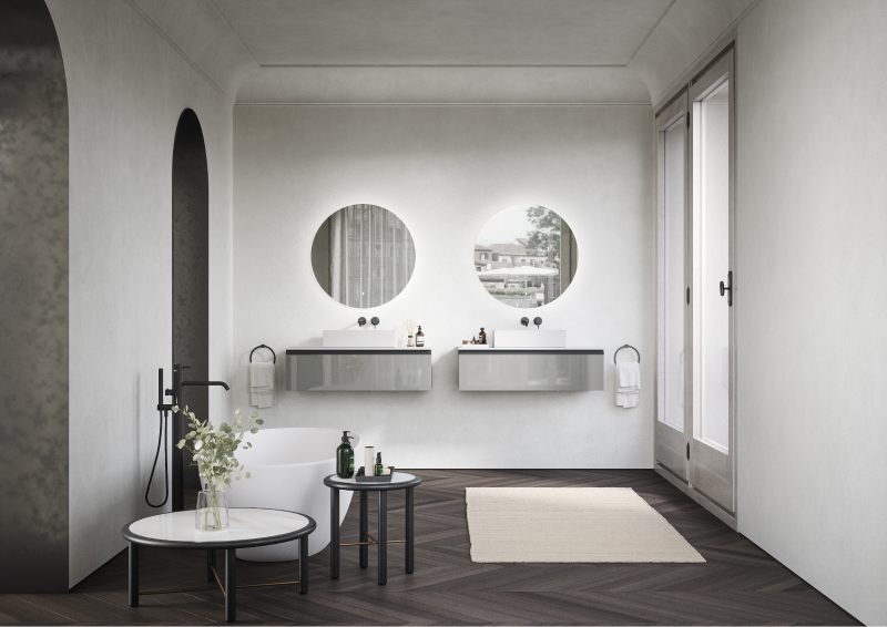 Oasis presenta la nuova collezione Forever, un’eccellente sintesi di forme e funzioni, dove geometrie moderne e squadrate sono alleggerite e impreziosite dalla sottile maniglia in alluminio che, colorata nella stessa finitura del mobile, scompare all’interno, creando un design integrato. Il mobile si adatta bene a qualsiasi spazio e situazione grazie alla sua elevata modularità e alla vasta gamma di finiture e colori, nella versione lucida, opaca e metallizzata. Infine, si potrai personalizzare la propria composizione scegliendo il lavabo più adatto alle proprie esigenze. I lavabi sono disponibili in ceramica, resina bianca o vetro, vetro integrato e retro verniciato, sia nella versione lucida che satinata.