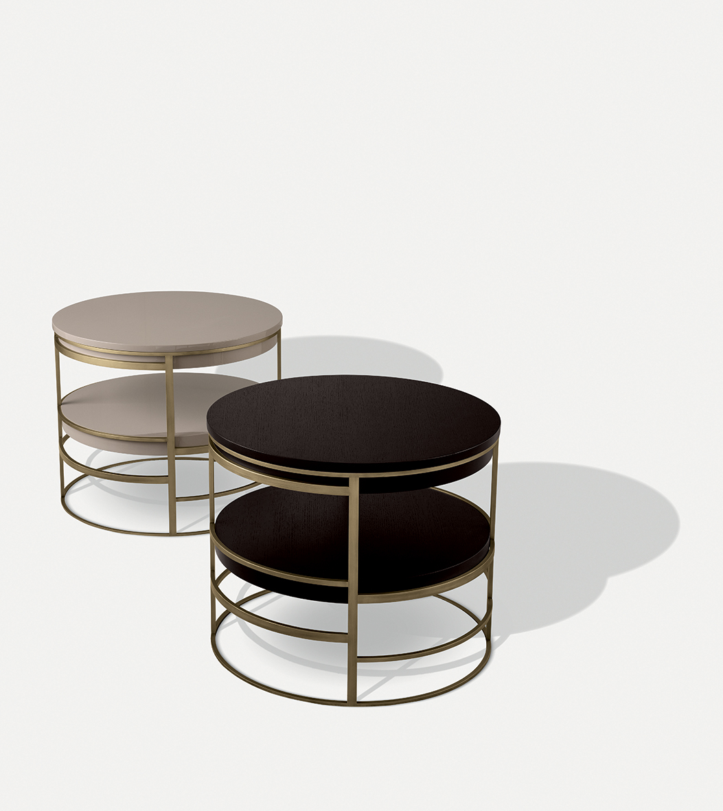 Medea’s signature style, with its asymmetrical structure and bronze finish, combined with contrasting thick wooden shelves, make it the talking point of even the most elegant and exclusive living zones. The shelves are available in a wide variety of colours and finishes, either in natural wood or with sumptuous matt and gloss lacquers. Also available in an oval version, Medea becomes the undisputed focus of attention in any setting. It is available in a wide variety of colours and finishes, either in natural wood or with sumptuous matt and gloss lacquers.