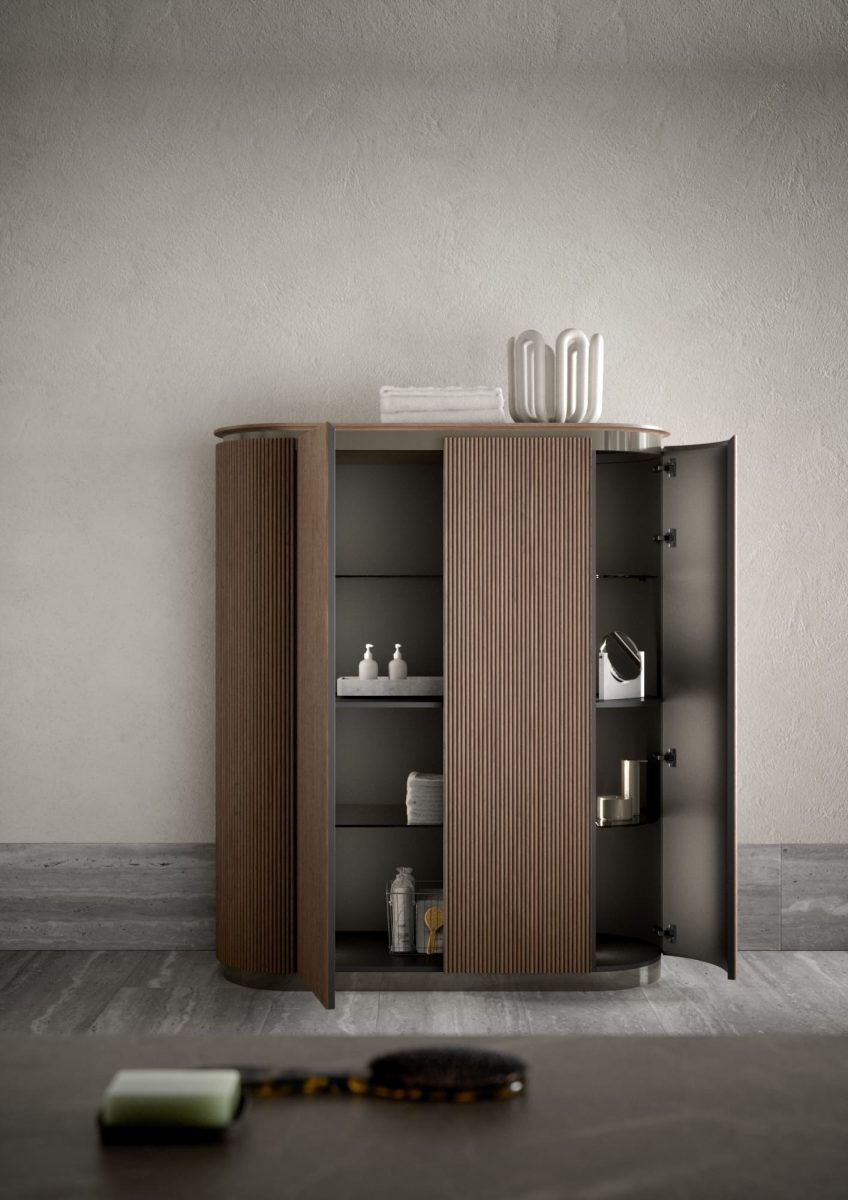 Al centro di questa collezione si trova il mobile lavabo da bagno, punto focale di funzionalità e bellezza. Disponibile in noce cannettato che conferisce un tocco di calore e naturalezza o nella versione laccata per un’estetica contemporanea, Nàos si distingue per la lavorazione artigianale e la cura dei dettagli.