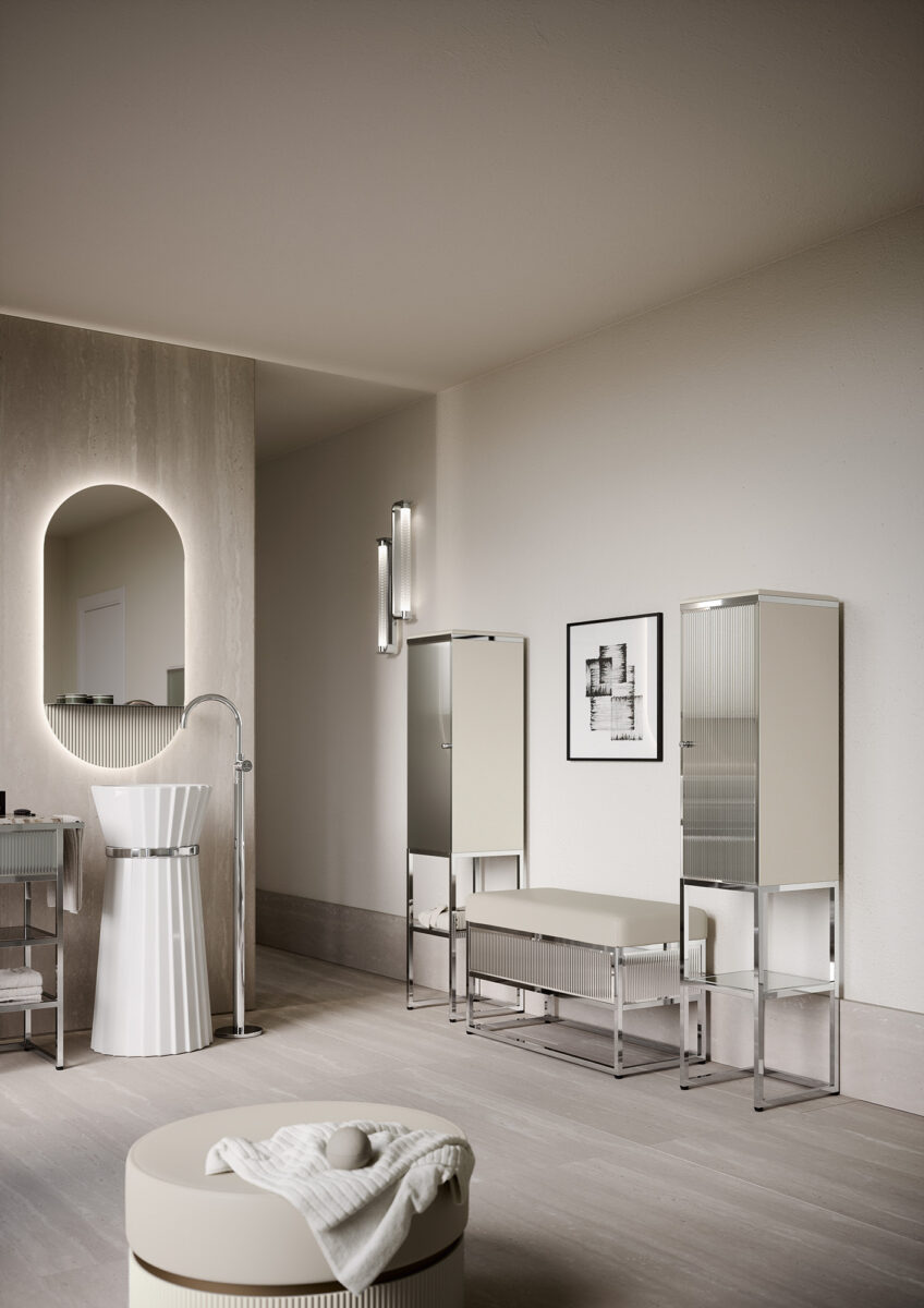 Роскошная и элегантная благодаря деликатному исполнению раковина-колонна Plissè похожа на складки платья