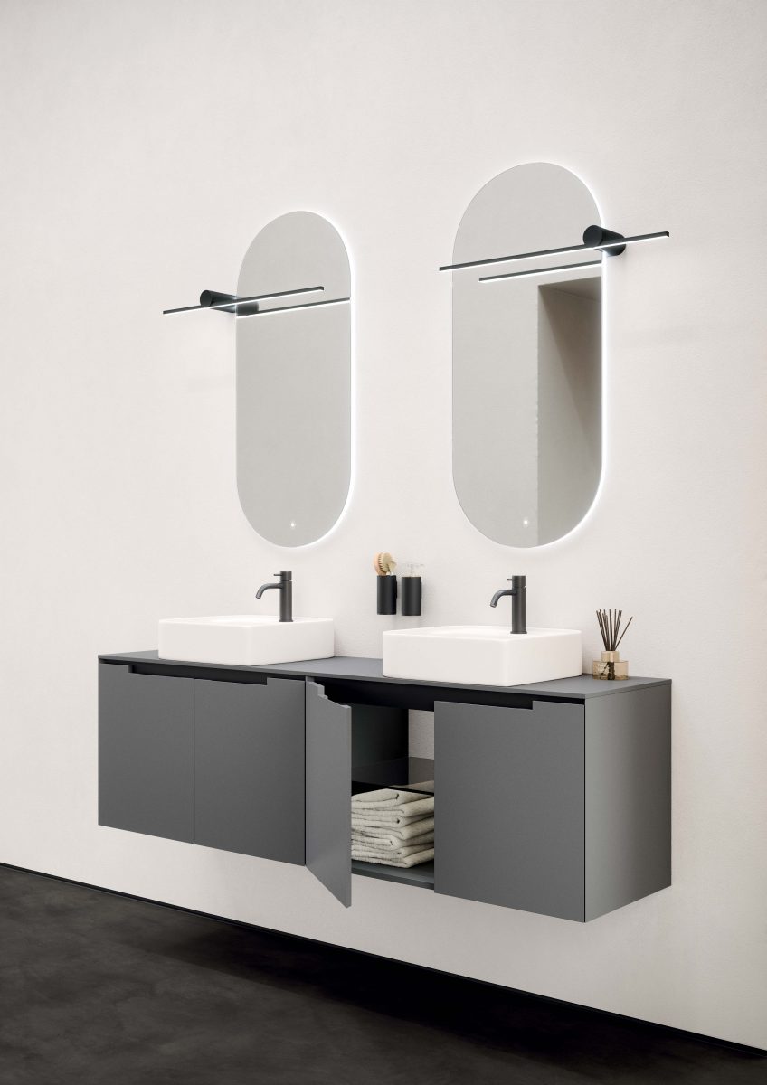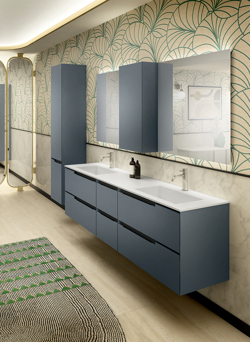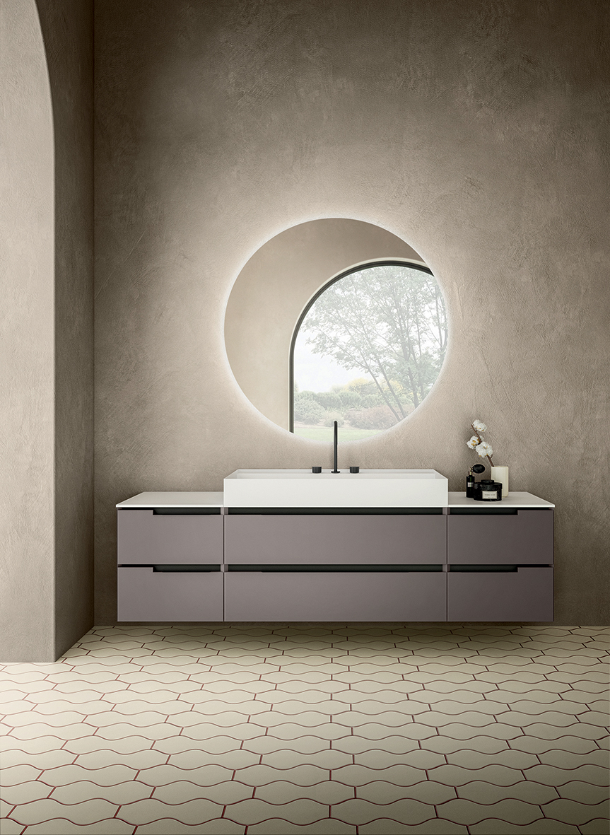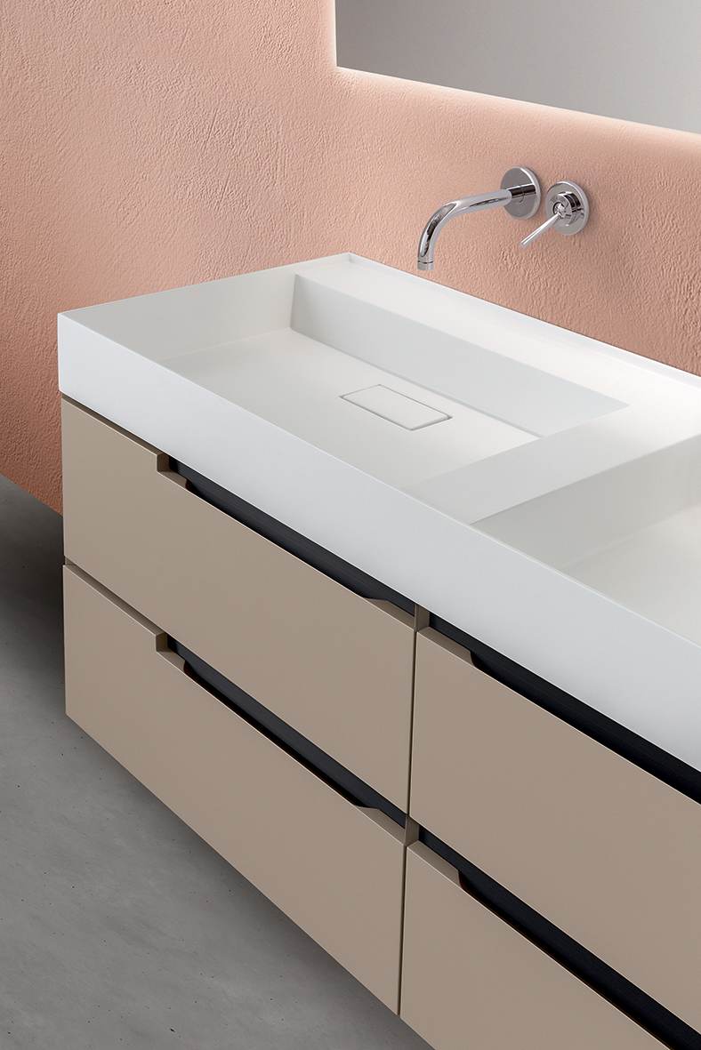 « Profilo » se présente au public comme une collection contemporaine et sophistiquée, flexible et hautement personnalisable pour répondre aux goûts et aux besoins de chacun. Trois profondeurs, des possibilités de composition infinies, une gamme vaste et sans précédent de lavabos, de laques et d’essences dans de nombreuses finitions, ne sont que quelques-unes des caractéristiques de cette nouvelle collection.