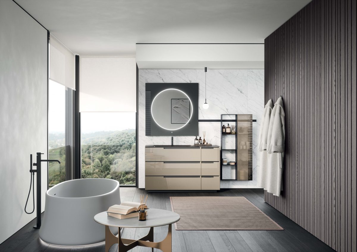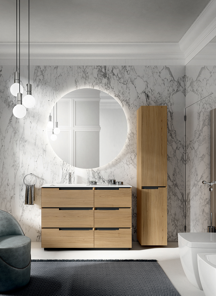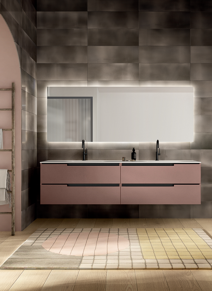 « Profilo » se présente au public comme une collection contemporaine et sophistiquée, flexible et hautement personnalisable pour répondre aux goûts et aux besoins de chacun. Trois profondeurs, des possibilités de composition infinies, une gamme vaste et sans précédent de lavabos, de laques et d’essences dans de nombreuses finitions, ne sont que quelques-unes des caractéristiques de cette nouvelle collection.