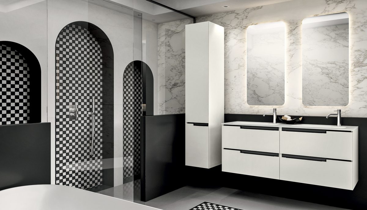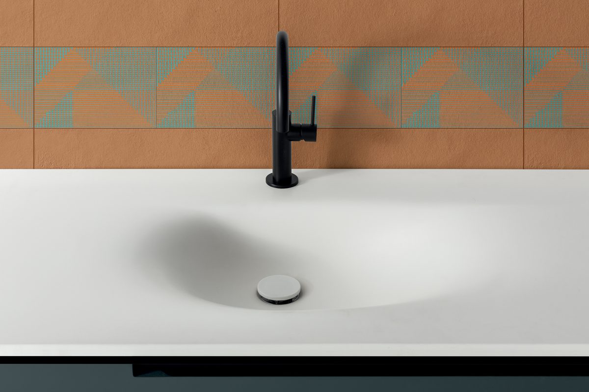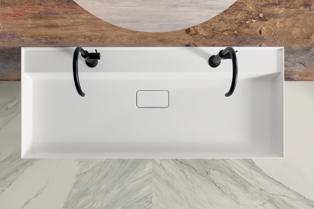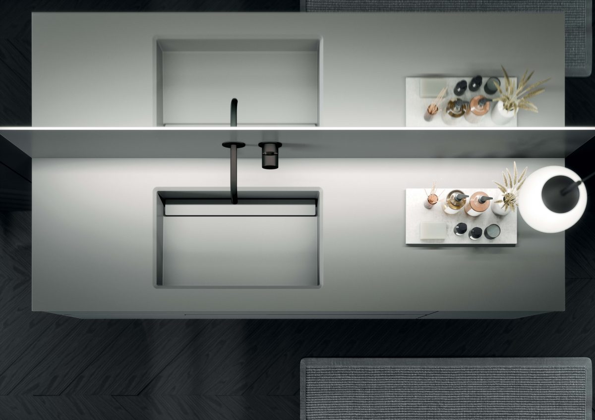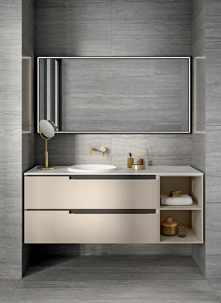 Three projections are available, as well as endless configurational possibilities. There is a wide selection of basins not to mention an extensive choice of lacquer and wood veneer finishes. Complementary items include contemporary taps, new mirrors complete with back-lighting and bathtubs in a variety of shapes and materials.