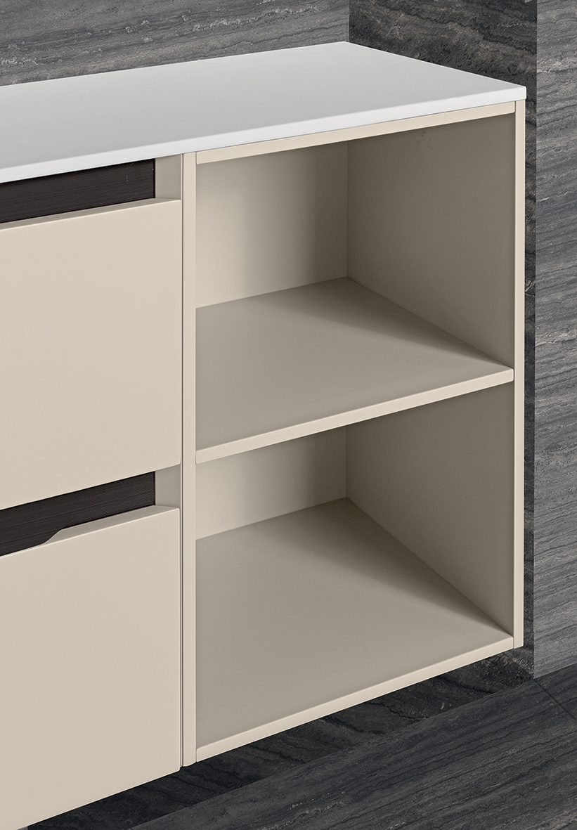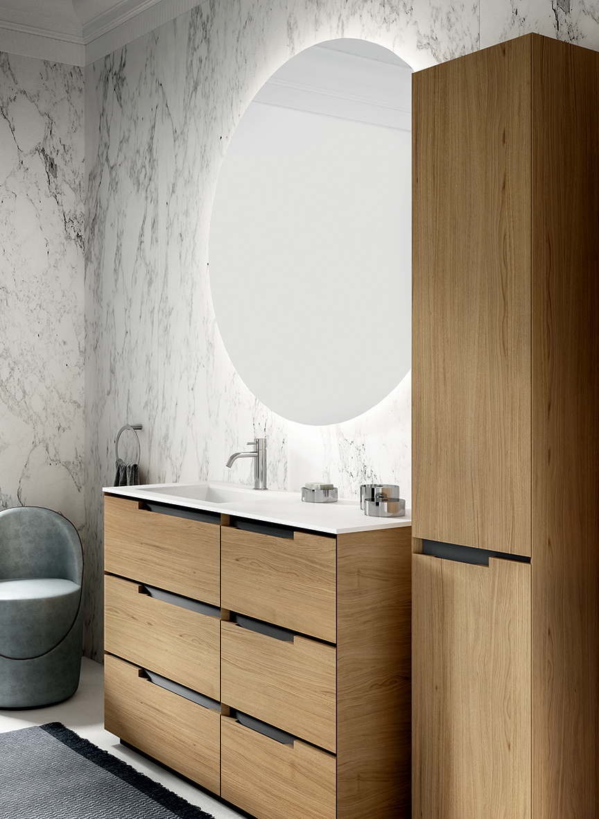With a name that reflects its “Profile” focused design, Profilo is a contemporary and elegant range which is versatile and highly customisable, to appeal to all manner of tastes and requirements. The design of the collection is defined by a continuous line given by the finger groove opening of the drawer fronts.