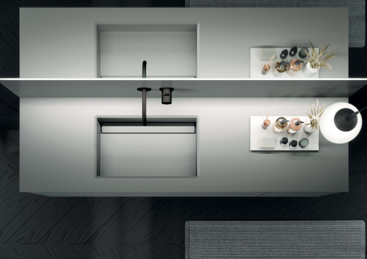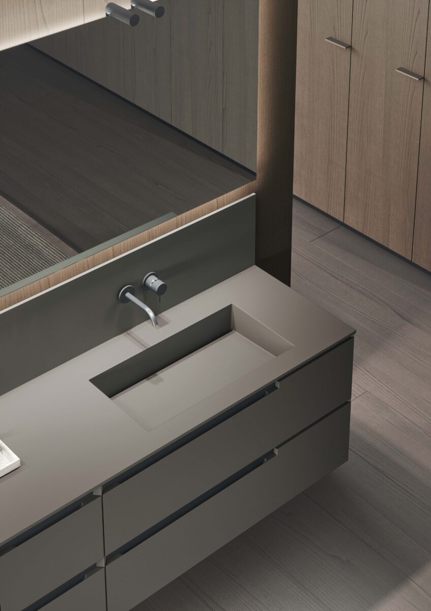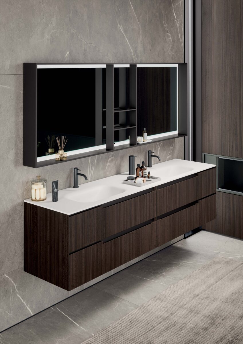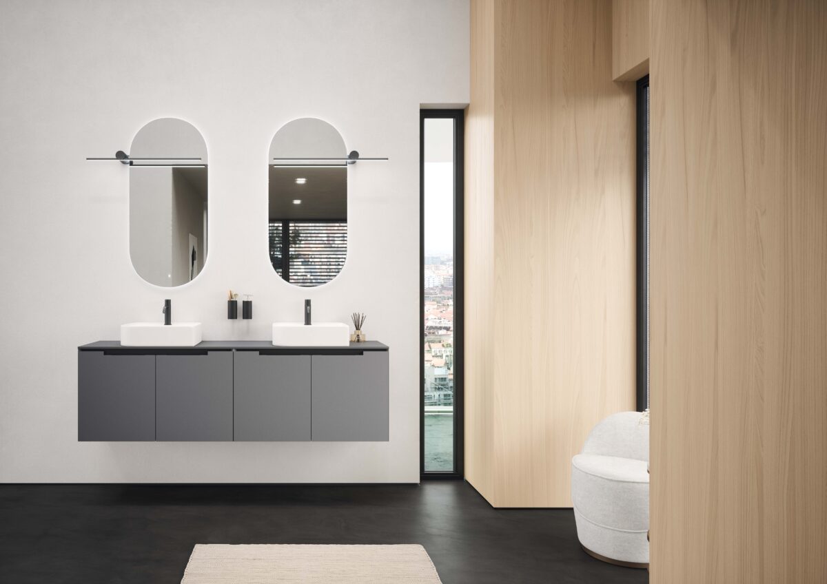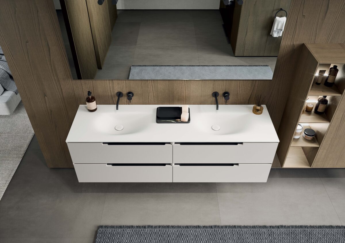 Profilo — современная и элегантная коллекция с продуманным, «профильным» дизайном, отражённым уже в названии. Её отличают универсальность и широкий выбор вариантов отделки и конфигураций — для любого вкуса и потребностей. Характерная особенность дизайна — непрерывная линия, создаваемая интегрированной ручкой-вырезом на фасадах ящиков.