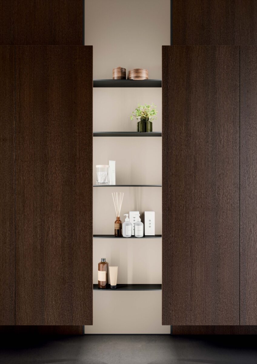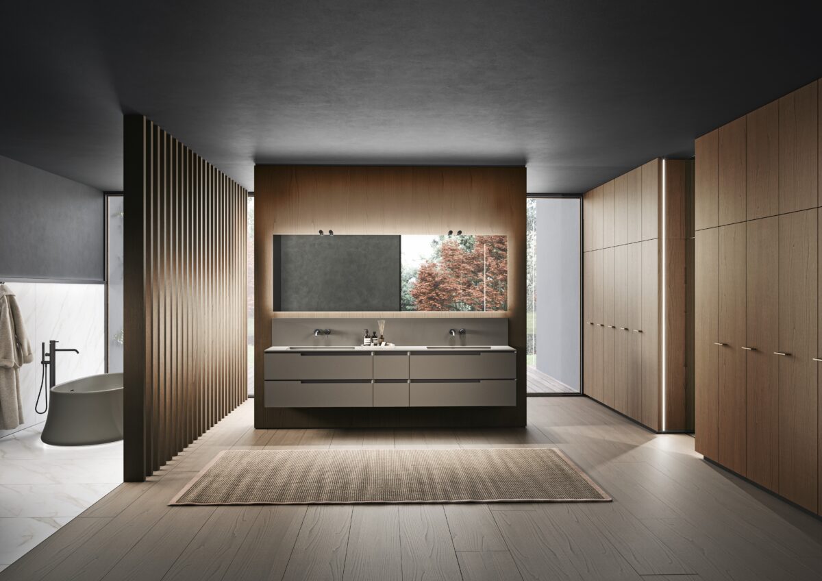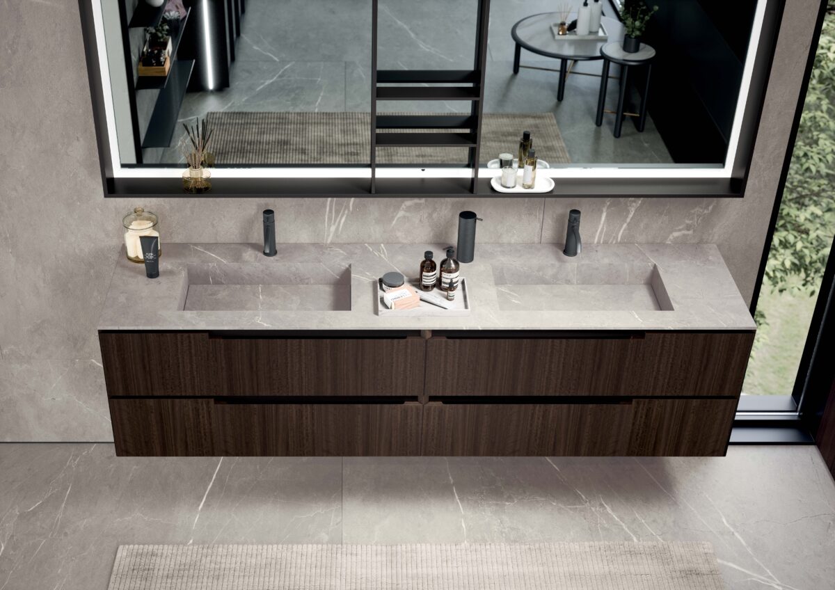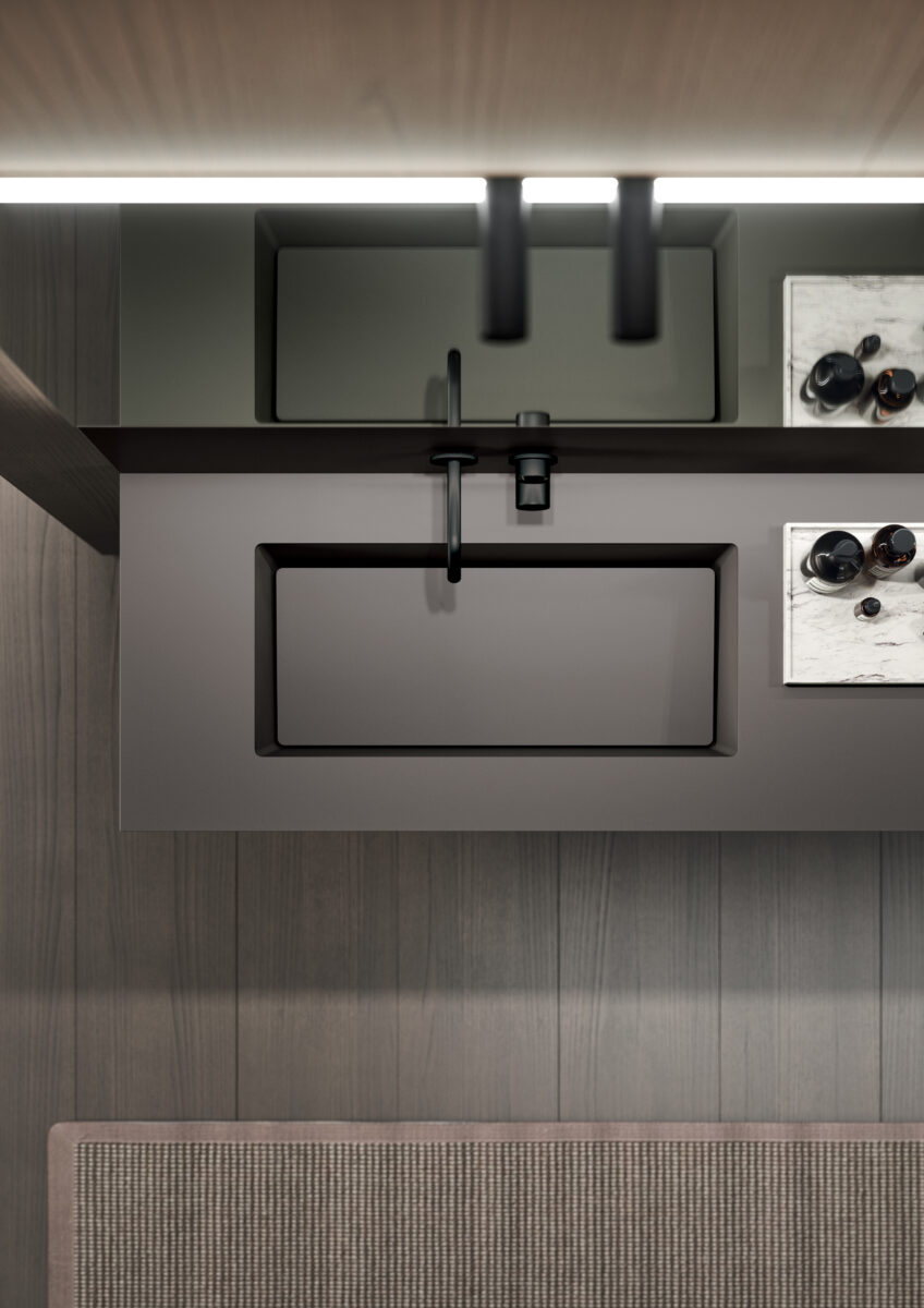 Profilo — современная и элегантная коллекция с продуманным, «профильным» дизайном, отражённым уже в названии. Её отличают универсальность и широкий выбор вариантов отделки и конфигураций — для любого вкуса и потребностей. Характерная особенность дизайна — непрерывная линия, создаваемая интегрированной ручкой-вырезом на фасадах ящиков.