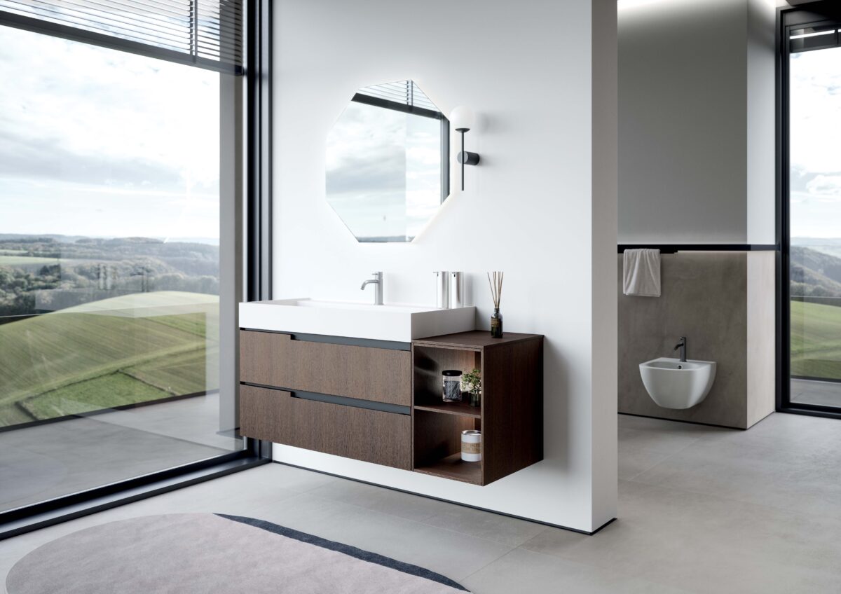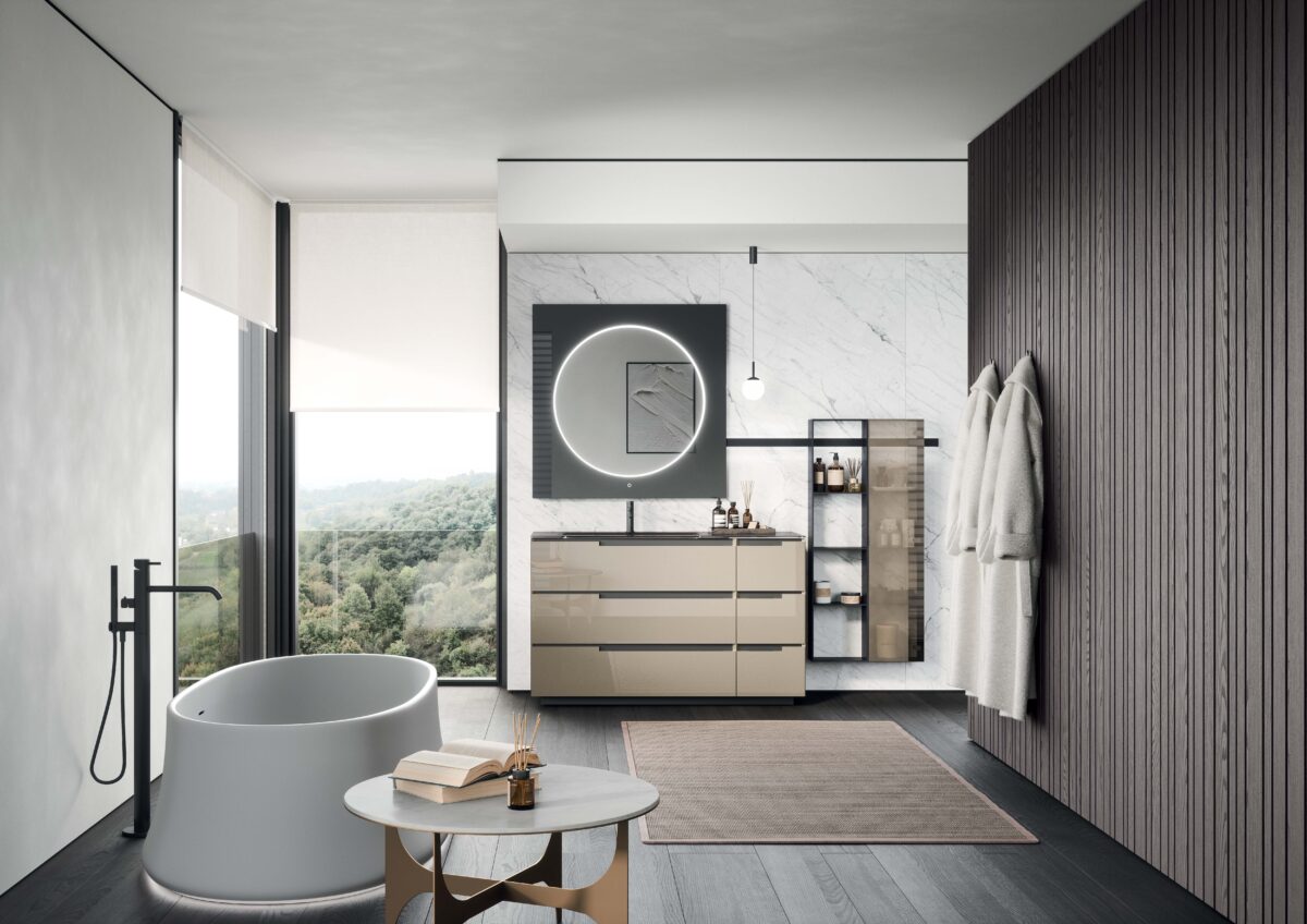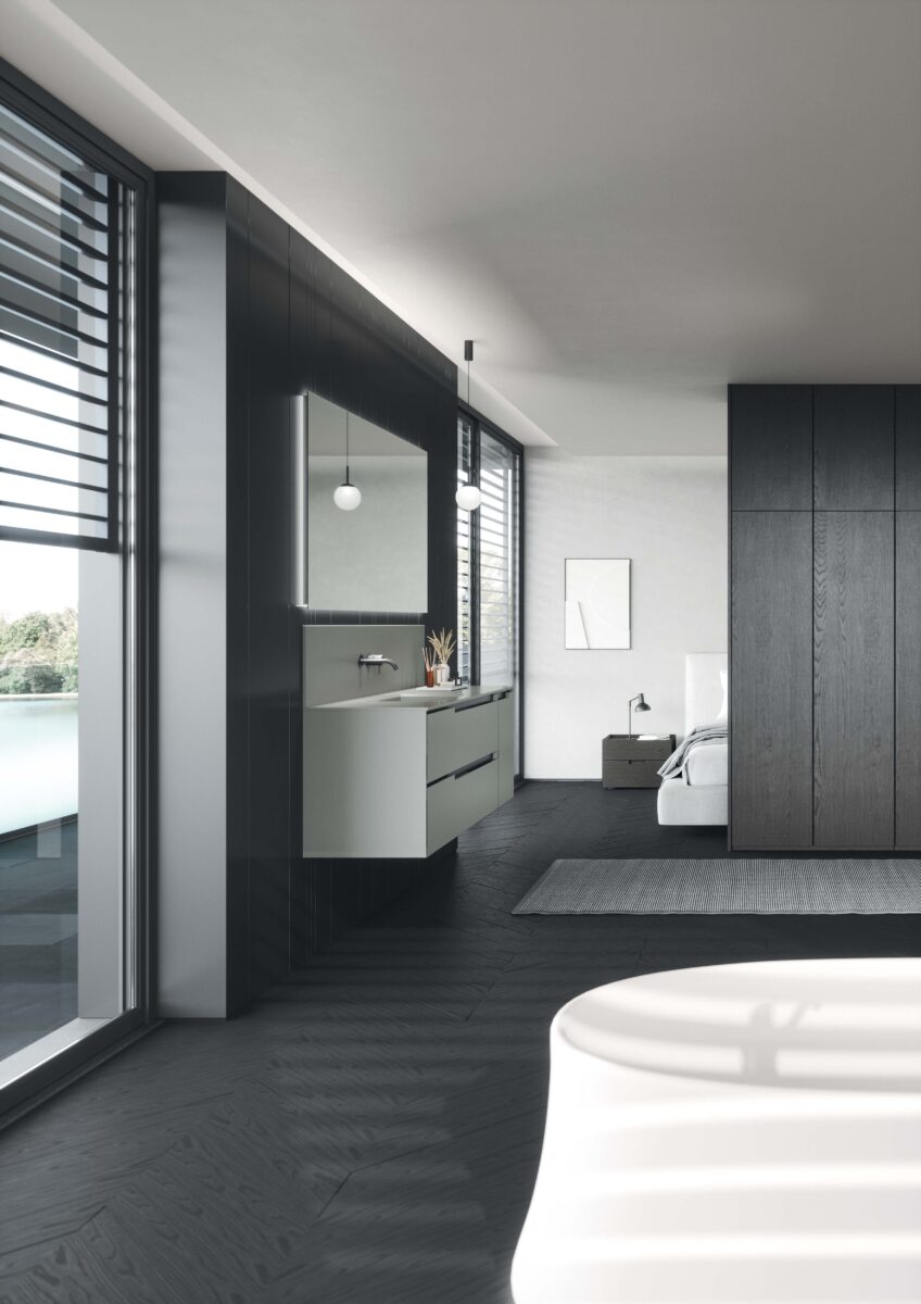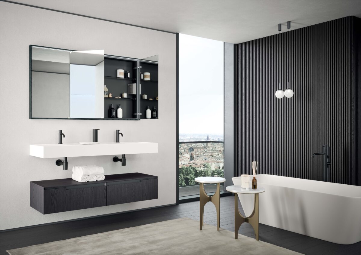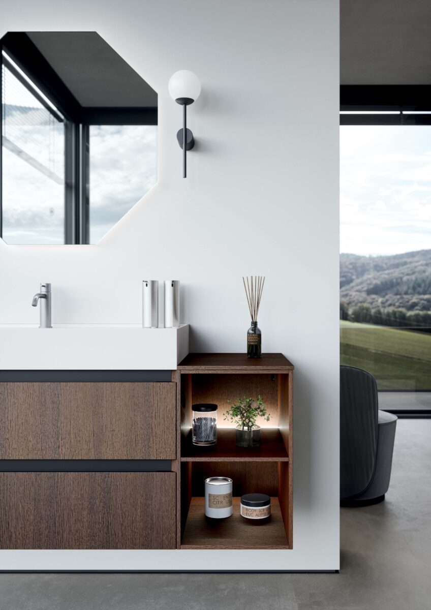 Profilo — современная и элегантная коллекция с продуманным, «профильным» дизайном, отражённым уже в названии. Её отличают универсальность и широкий выбор вариантов отделки и конфигураций — для любого вкуса и потребностей. Характерная особенность дизайна — непрерывная линия, создаваемая интегрированной ручкой-вырезом на фасадах ящиков.