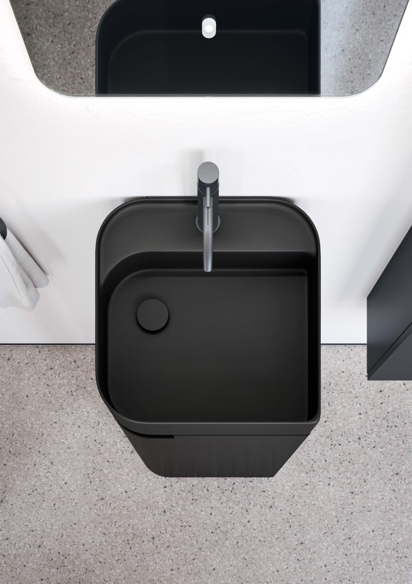 >Keywords: Oasis-Eden collection, elegant and refined aesthetic, with a decorative metal band, modern clean-lined design, Complementary integrated washbasins come in various shapes and three different materials