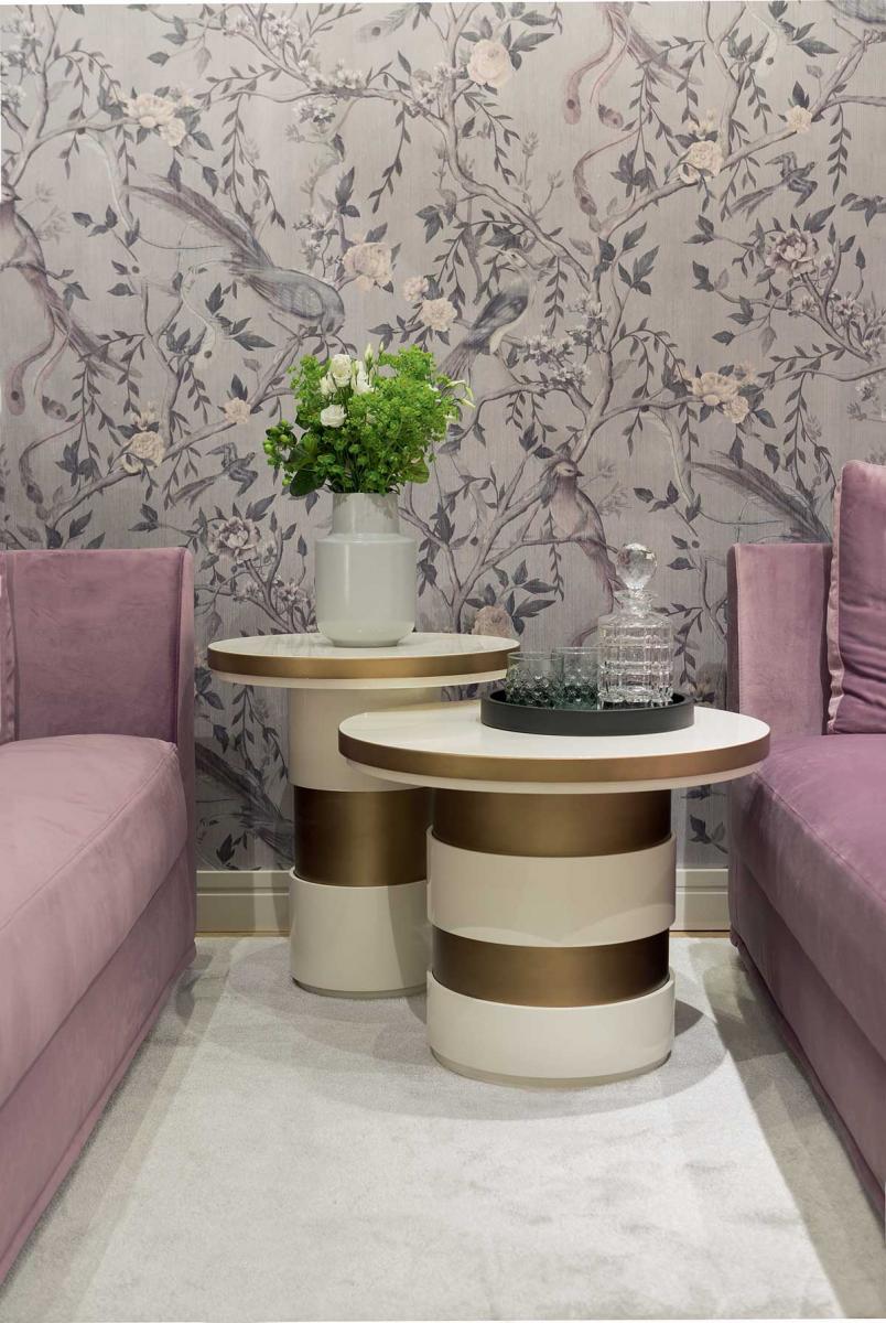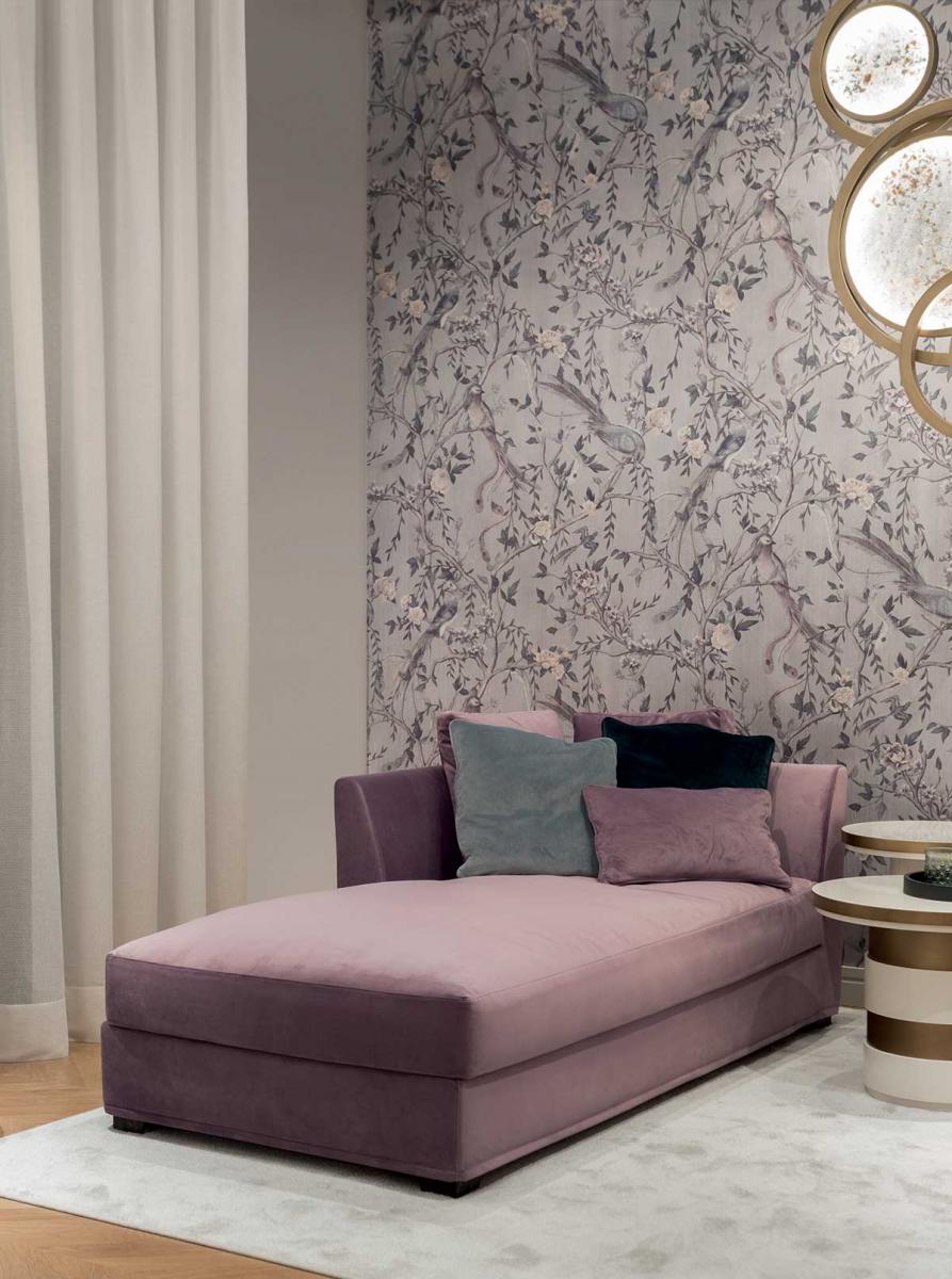 Una stanza da lettura sofisticata e rilassante nelle tonalità del Malva. Invoglia a sedersi con un libro e a dedicare il proprio tempo alla lettura. A volte non c’è nulla che desideriamo di più che rannicchiarci con un libro nella nostra poltrona da lettura, sotto il caldo bagliore della lampada a sospensione Moon. Il divano Berenson è disponibile in diverse dimensioni e modularità. Il cuscino dello schienale e i cuscini decorativi in piuma d’oca, rendono la chaise-longue Berenson ancora più confortevole all’interno di questo studio. Non può mancare la libreria Magritte, modulare e personalizzabile nelle finiture, da cui prendere ispirazione per la scelta del libro giusto. Il tavolino Eros, con i suoi toni chiari, completa questa stanza, perché è uno dei pezzi più versatili e utili che rendono l’angolo da lettura ancora più accogliente e confortevole.