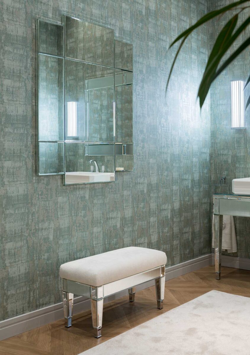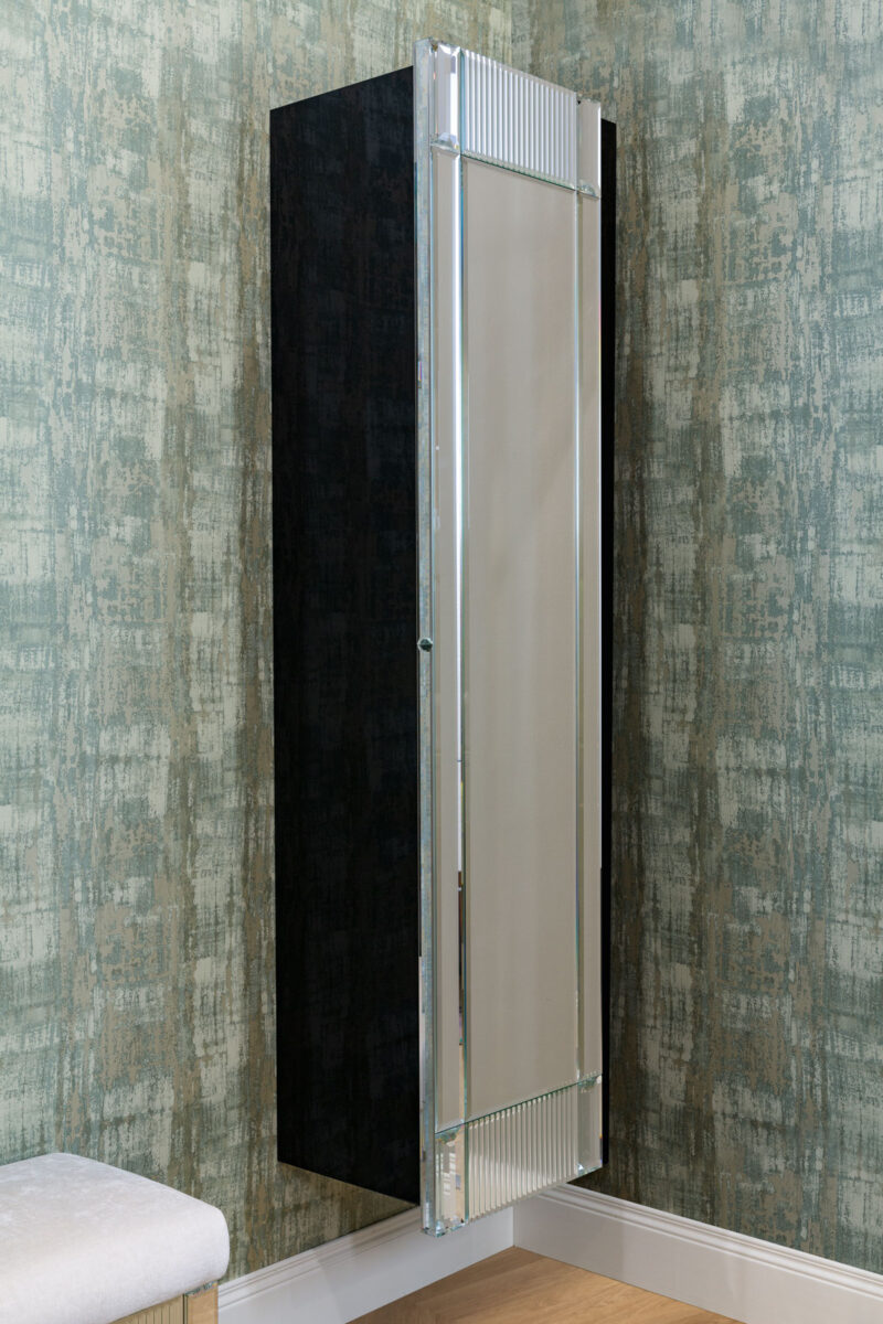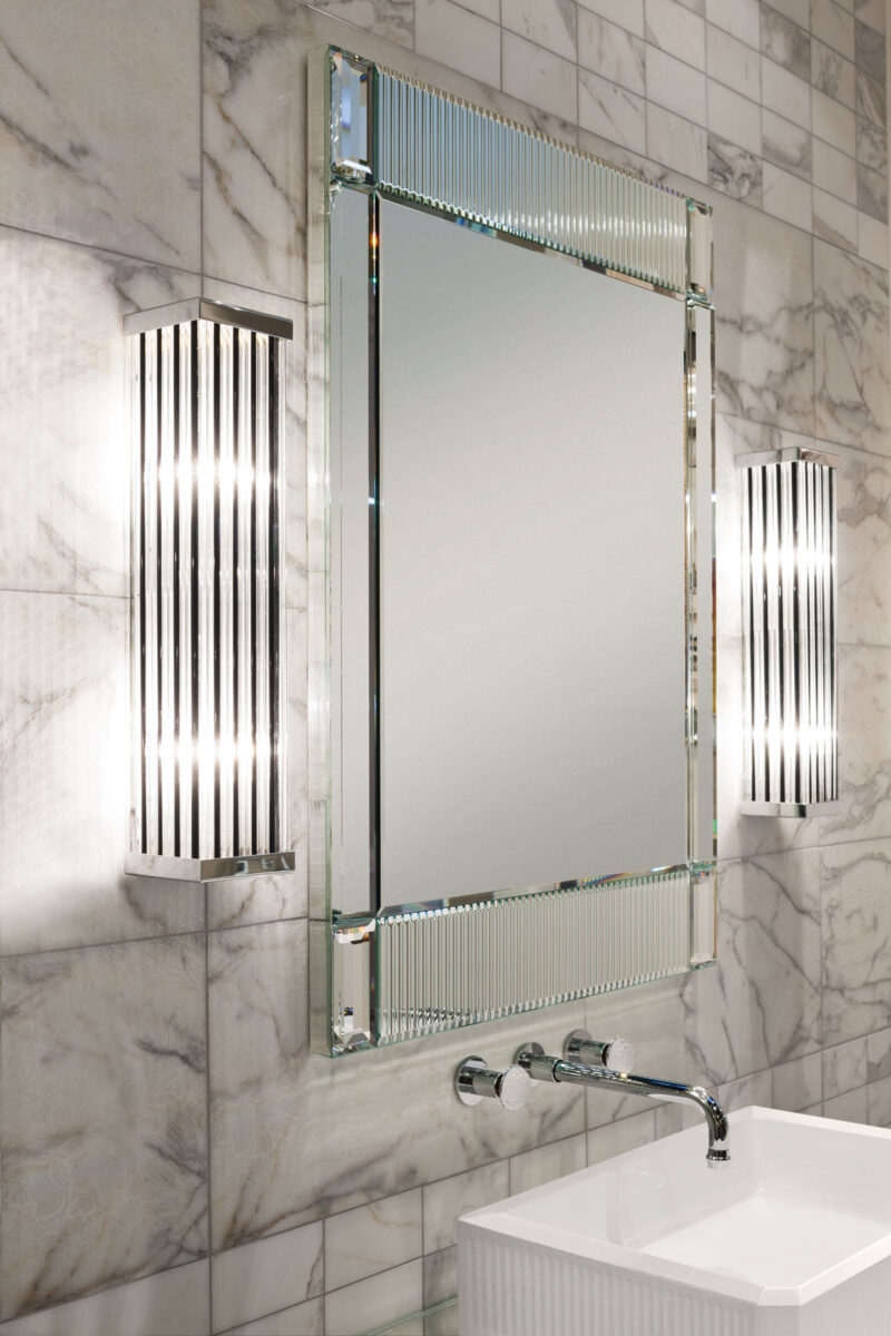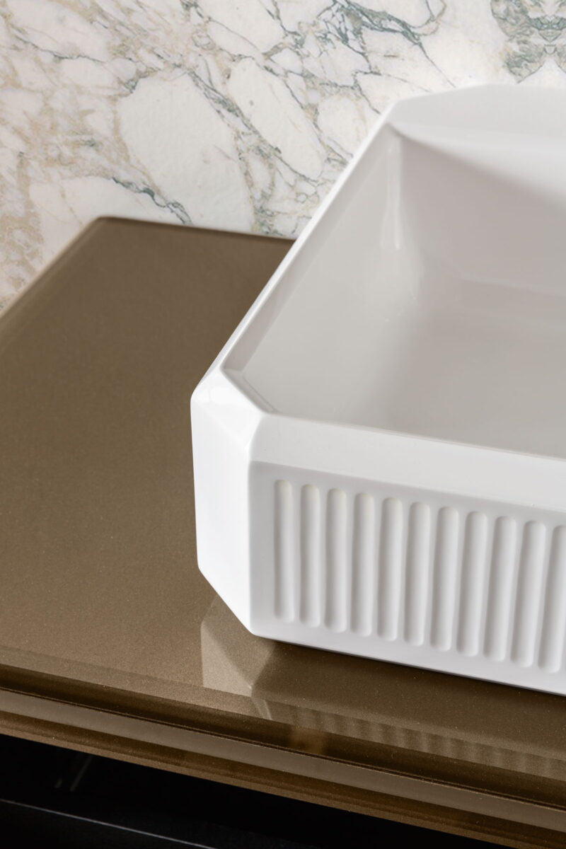 Эта коллекция олицетворяет исключительность и элегантность, черпая вдохновение в роскошных венецианских интерьерах. Строгая геометрия дизайна в стиле ар-деко подчёркнута сочетанием драгоценных материалов и тонкой работы, которые усиливают её неповторимый и притягательный характер. Коллекция Rialto включает консоль разных размеров, в комплекте с соответствующей раковиной и зеркалом. В дополнение к выдвижным ящикам, высокие шкафы могут обеспечить дополнительное место для хранения при необходимости. Каркас и столешница мебели полностью облицованы цельным стеклом — в вариантах зеркальной или чёрной отделки. Фасады ящиков, рамы зеркал и края высоких шкафов украшены уникальным «ребристым» или «гофрированным» декором, а геометрические элементы ножек напоминают огранённый алмаз. Накладная раковина выполнена из белой глянцевой смолы и также имеет «ребристый» декор.