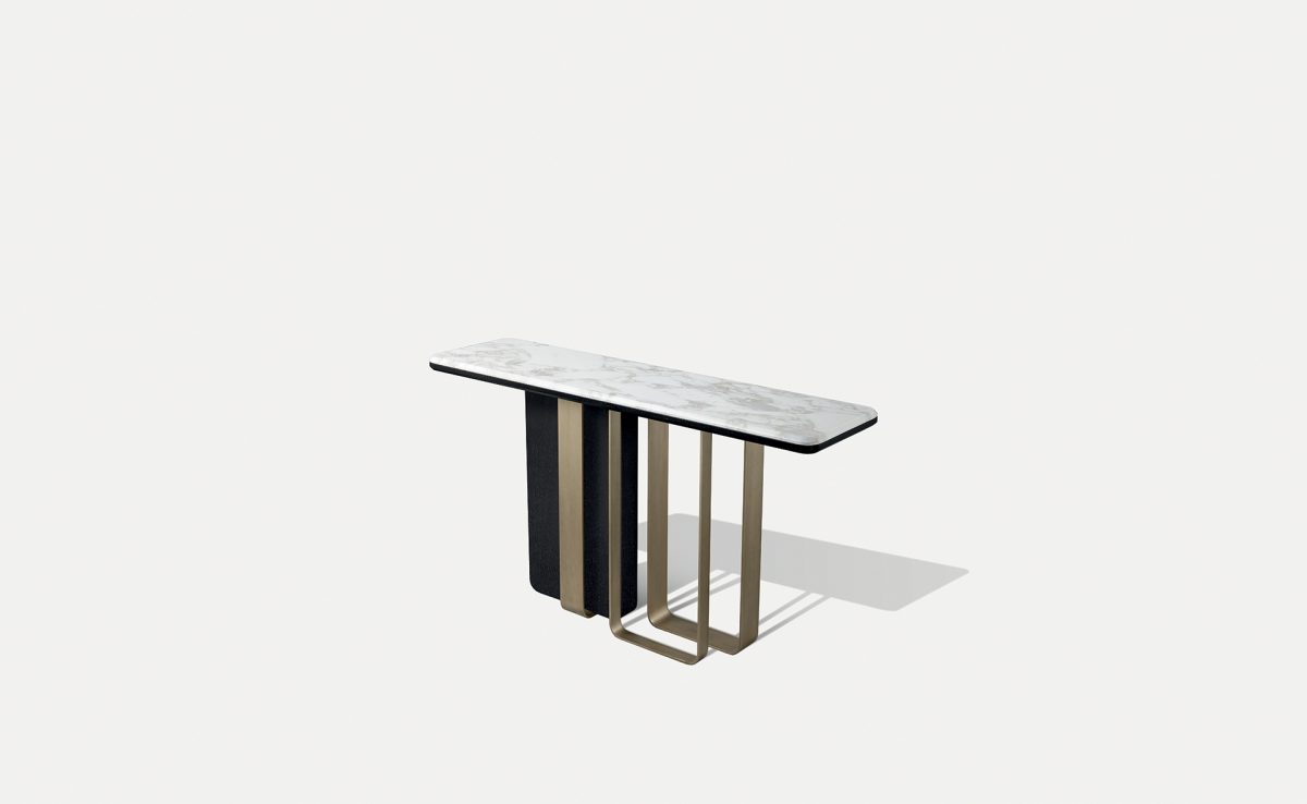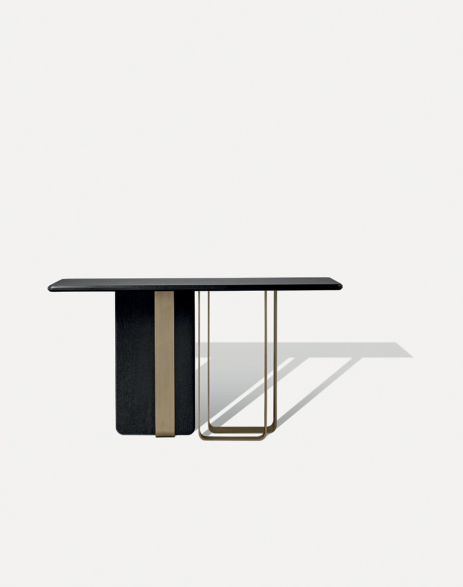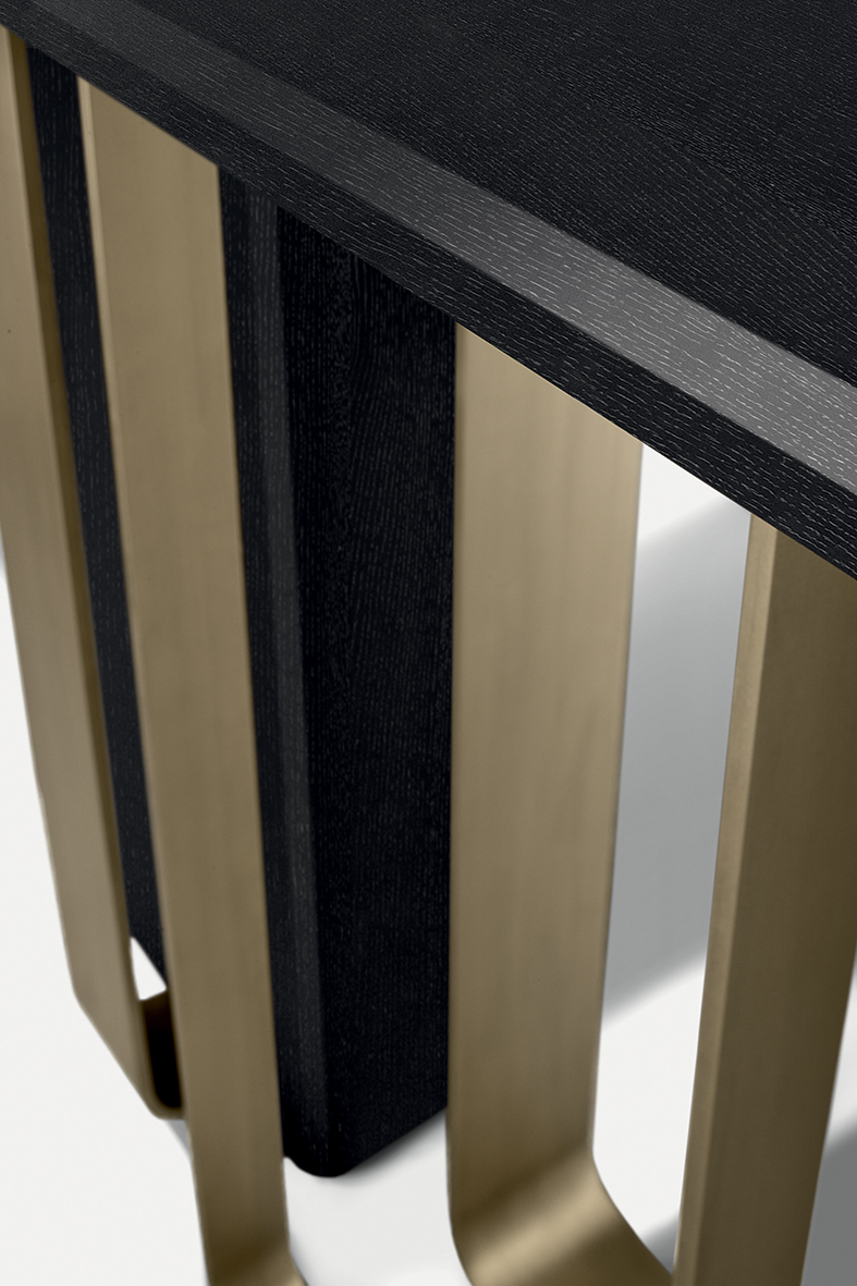 A rigorous geometry defines the “statement” base of the Saint Germain console, which is both functional and decorative in equal measure. The top can be available in many different versions: ten types of marble for who want something of very sophistical, or four types of wood for a design more minimal. The base in always in wood with a decorative bronze metal support. Inspired by the Art Déco movement, the Saint-Germain console embodies a piece of micro-architecture and is ideal for environments with a strong and well-defined personality.