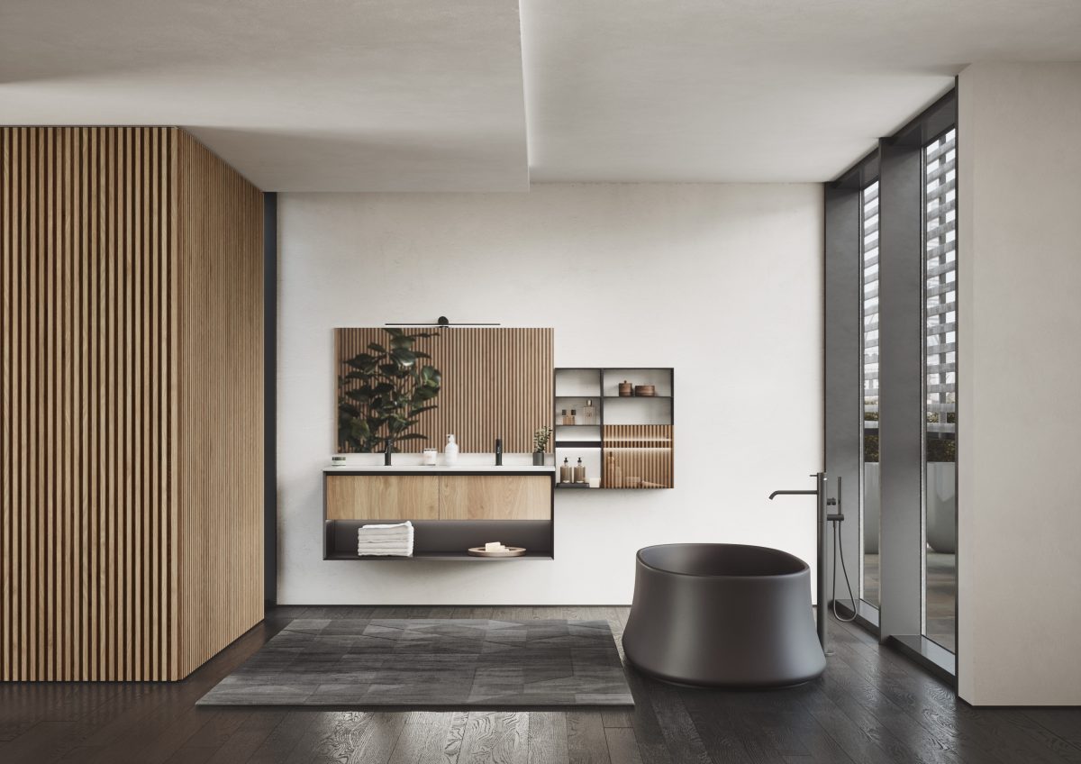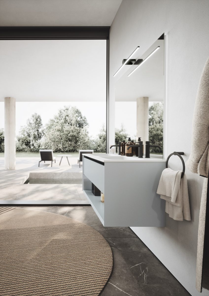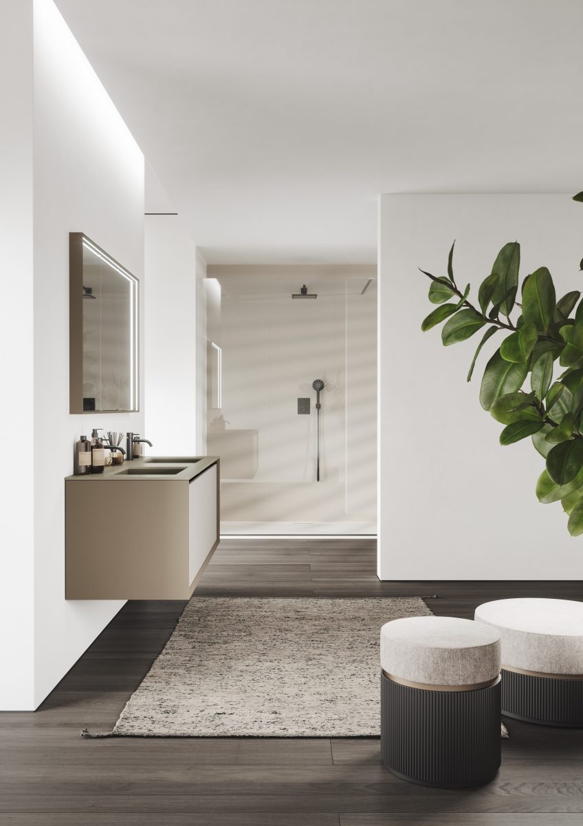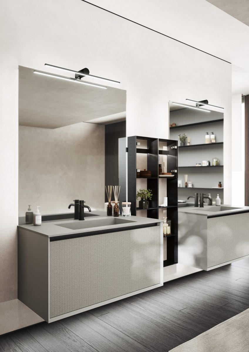 Die Kollektion bietet eine breite Modularität, um sich jeder Art von zeitgenössischem Ambiente anzupassen, vom Badezimmer bis hin zu einem geräumigen “Salle de Bain”