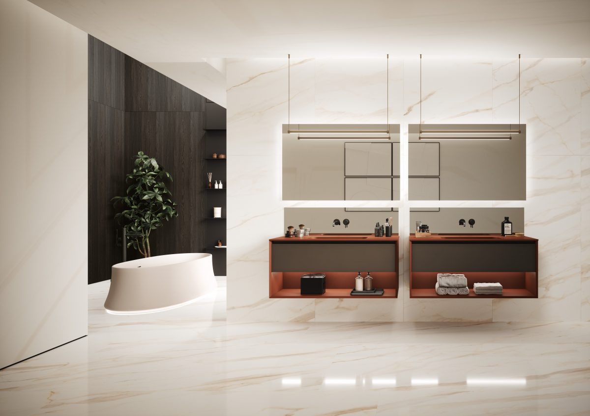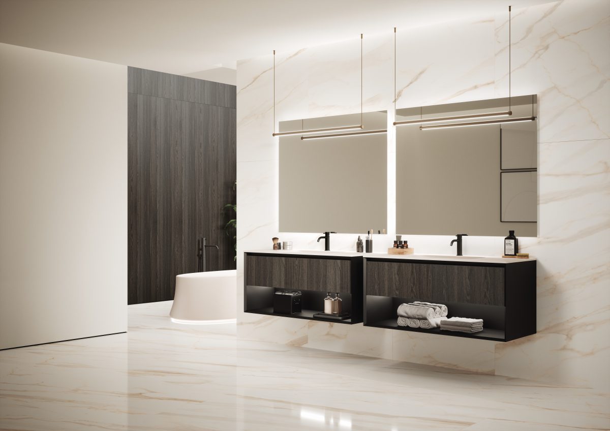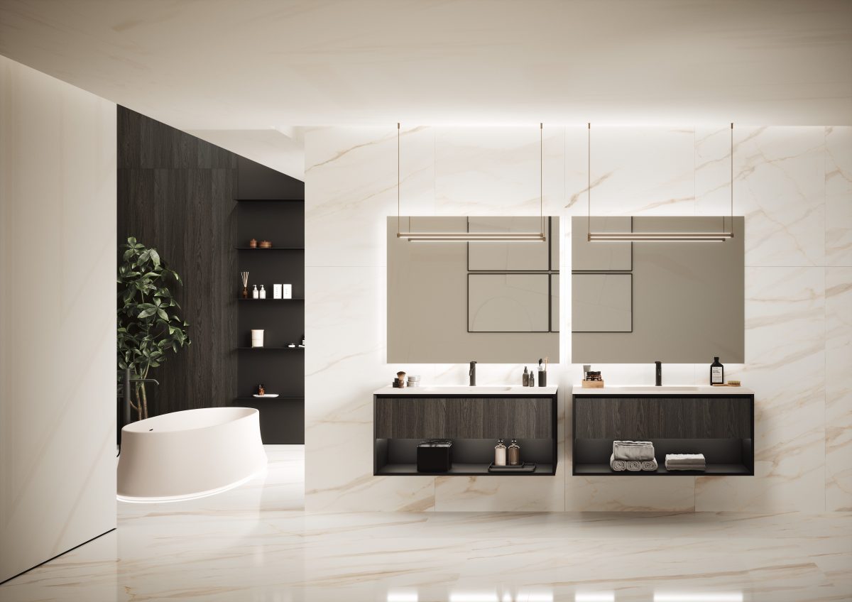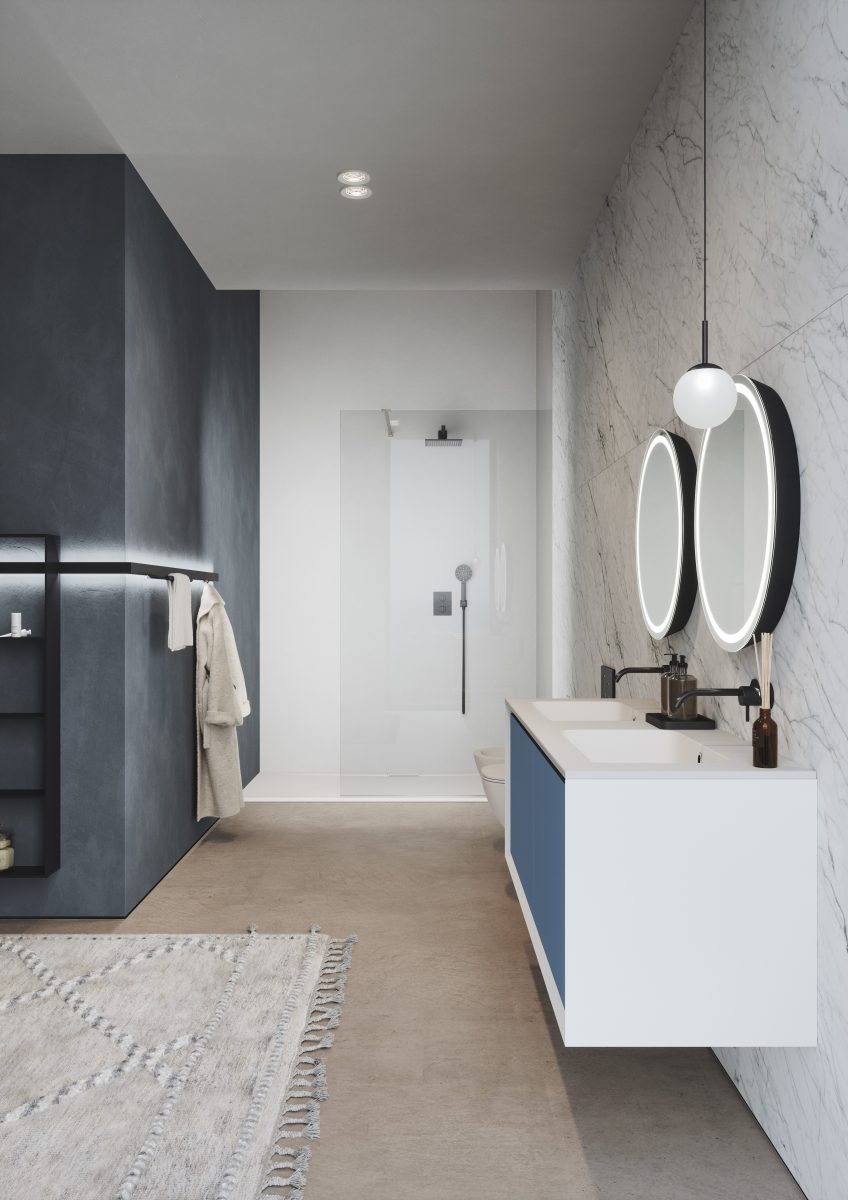 Die Kollektion bietet eine breite Modularität, um sich jeder Art von zeitgenössischem Ambiente anzupassen, vom Badezimmer bis hin zu einem geräumigen “Salle de Bain”