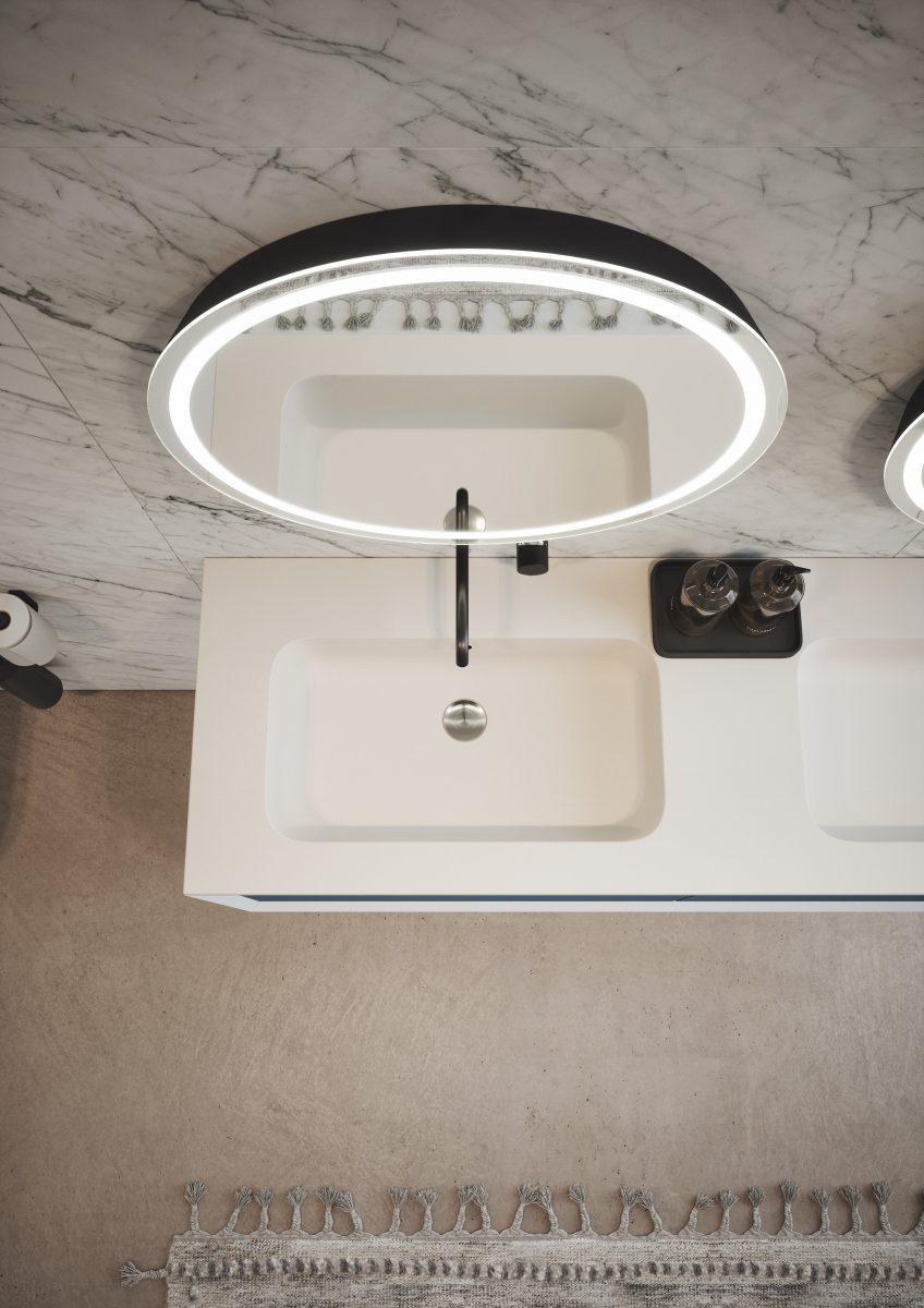 Also available to complete the overall look is an array of complementary items such as mirrors, baths, taps and small bathroom accessories.
