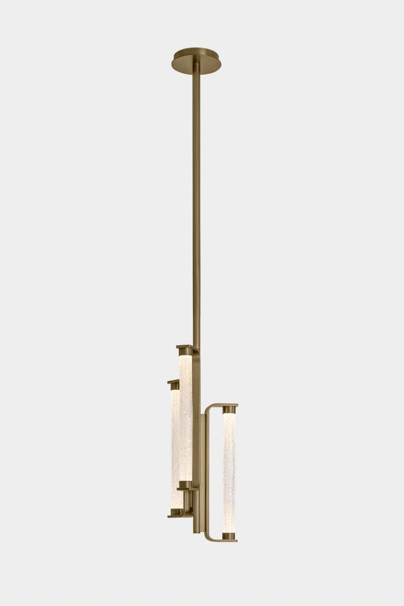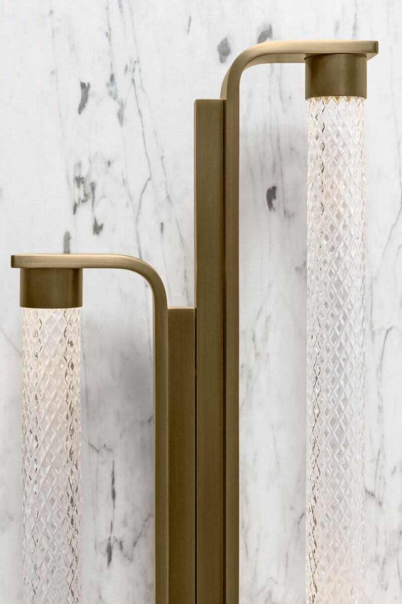 Stradivari entstand aus der Idee heraus, eine starke, reine Form mit einem stilistischen Bezug zu einem erkennbaren Element zu schaffen. Das gebogene Metall, das den Diffusor hält, ist eine Form, die Teil der kollektiven Vorstellungskraft ist, aber vor allem einen Bezug zum Bogen einer Geige herstellt. Der Name kam spontan, und in Anlehnung an die klassische Tradition, die an Stil und Musik gebunden ist, wurde diese Leuchte mit einem handbearbeiteten Glas verziert, das an Italien, oder besser, an Venedig erinnert. Das Ergebnis ist eine zeitgemäße Leuchte, die sich dank der Wahl der Materialien durch ihre Eleganz auszeichnet. Ihre Form ermöglicht auch verschiedene Kombinationen, die Kompositionen mit Hänge-, Tisch- und Wandleuchten ins Leben rufen. Stradivari ist als Hänge-, Wand- und Tischleuchte in den Ausführungen Gold, Bronze und Chrom erhältlich.