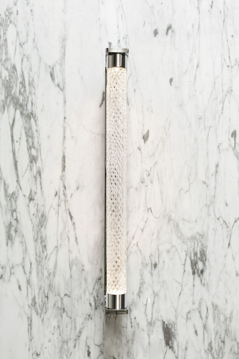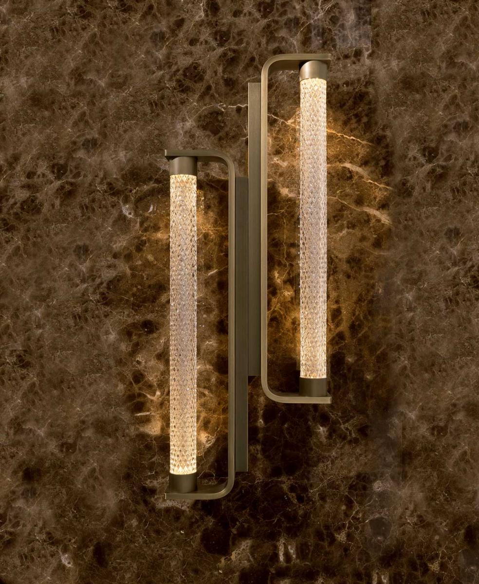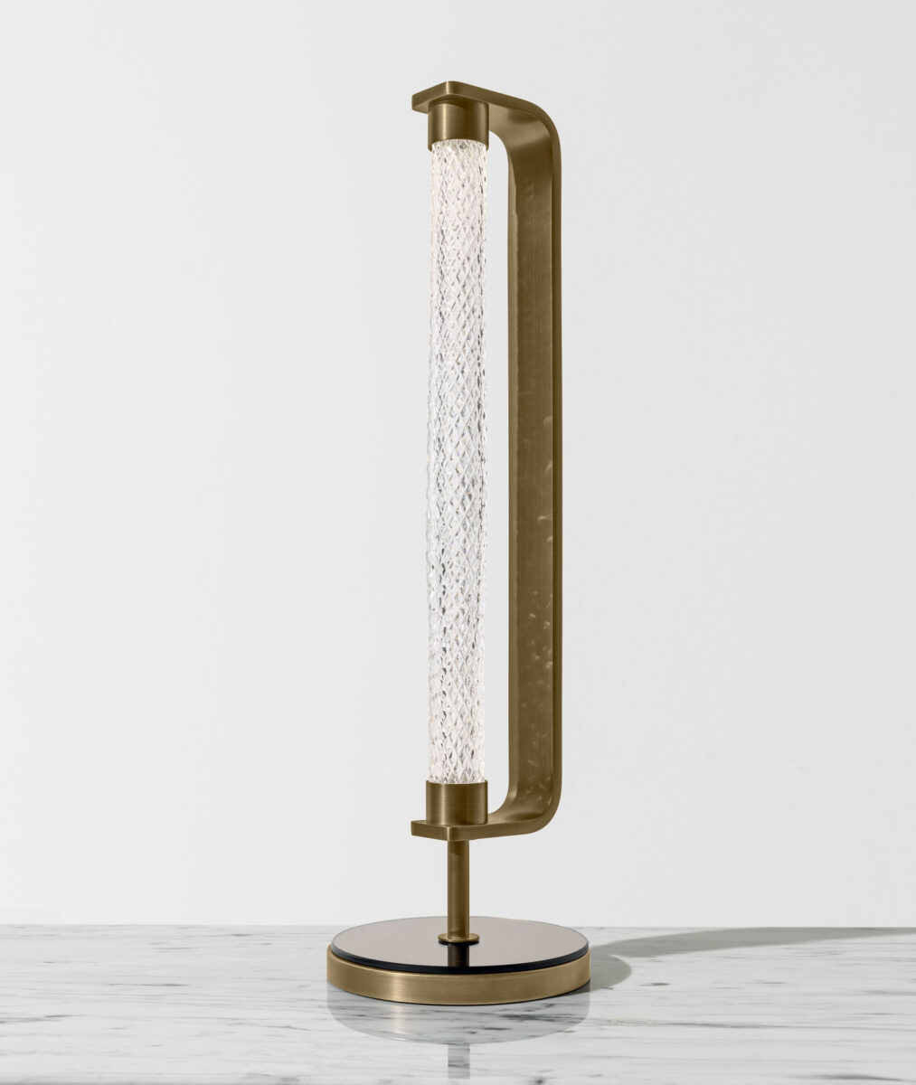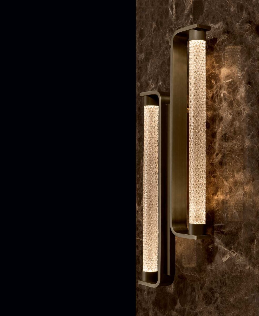 >Keywords: strong personality embodying a style, the bow of a violin, classical tradition synonymous with music, artisanal hand-made crystal, contemporary lamp, pendant, table and wall-mounted applique versions