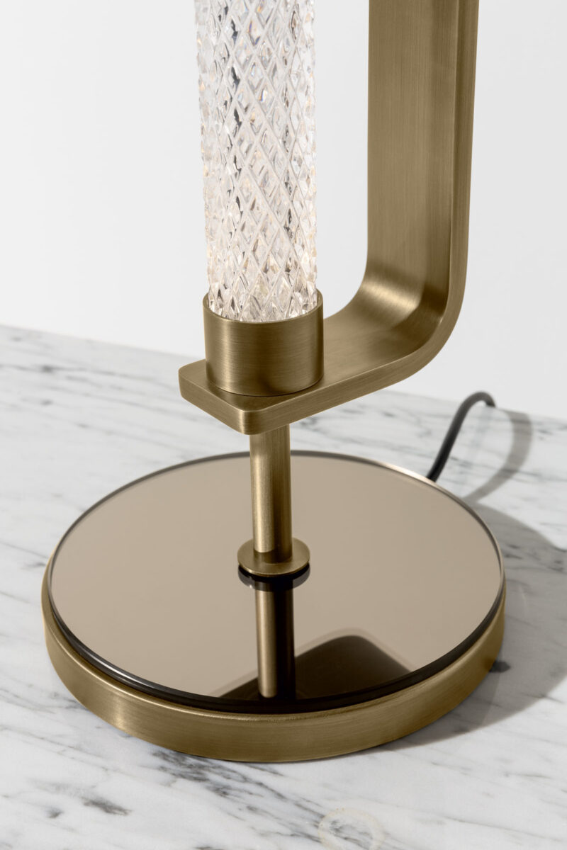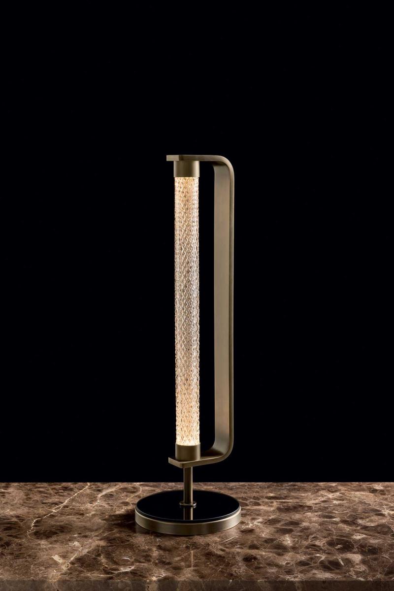 The idea behind Stradivari was to create a lamp with a bold form and strong personality embodying a style reminiscent of former times. The curved metal band running parallel to the lampshade not only secures it in place but primarily allows its silhouette to resemble the bow of a violin. The name came about spontaneously and conjures up classical tradition synonymous with music and style. Embellished with artisanal hand-made crystal, each piece is evocative of typical Italian craftsmanship, particularly that of Venice. The result is a contemporary lamp which, thanks to the selection of fine materials used, is notable for its elegance. Its design allows for different configurations such as pendant, table and wall-mounted applique versions. Also available as side lights, Stradivari comes in a choice of gold, bronze and chrome metal finishes.